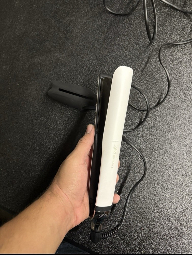The GHD Platinum+ 1" Flat Iron Hair Straightener is a high-quality styling tool designed for all hair types. With its ceramic white barrel and maximum temperature of 365°F, it provides smooth and sleek results. Heats up very fast like new. Missing box.