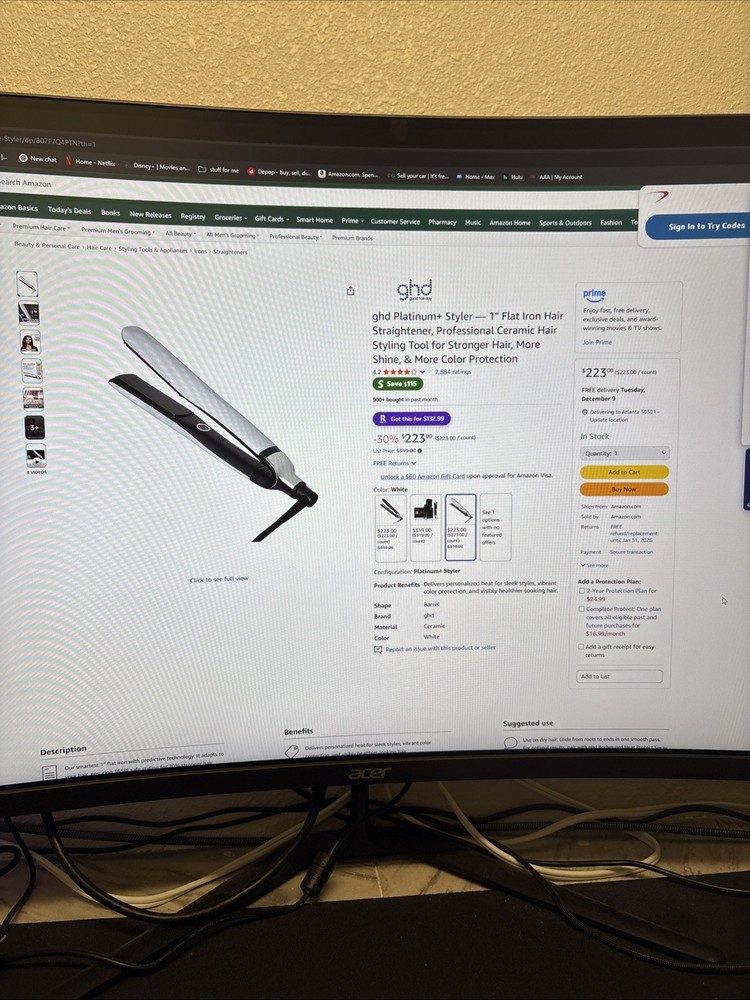 GHD Platinum+ 1" Flat Iron Hair Straightener Ceramic White