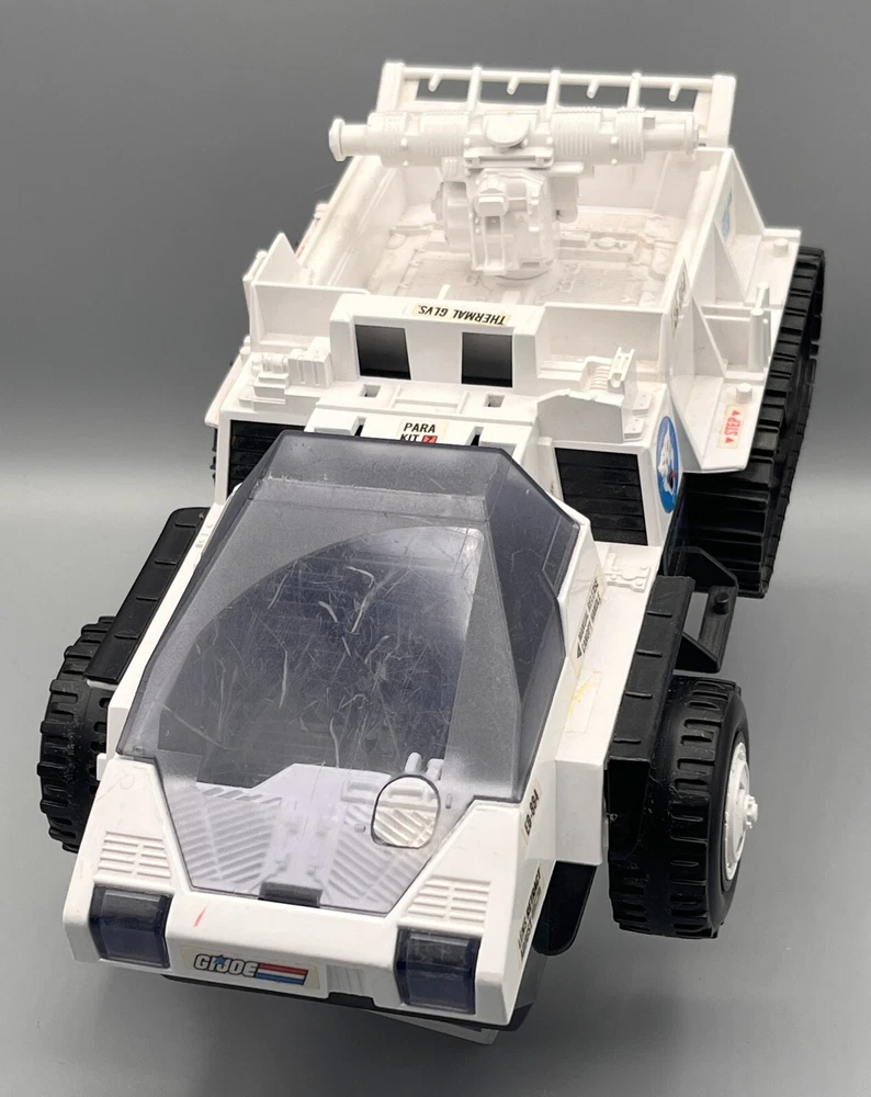 Featured Person/Artist:GI JoeYear Manufactured:1985Time Period Manufactured:1980-1989gtin13:Does not applyFranchise:G.I. JoeBrand:HasbroItem Width:5 inItem Length:10”MPN:1985Vehicle Type:Snow CatTheme:Military & AdventureCharacter:Snow CatPackaging:Without PackagingColor:WhiteAnimal Species:CatUPC:Does not applyType:VehicleNumber in Pack:1Vintage:YesMaterial:ABS PlasticModel:Snow CatItems Included:As IsSigned:NoSeries:G.I. Joe