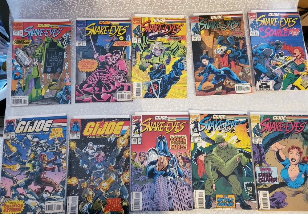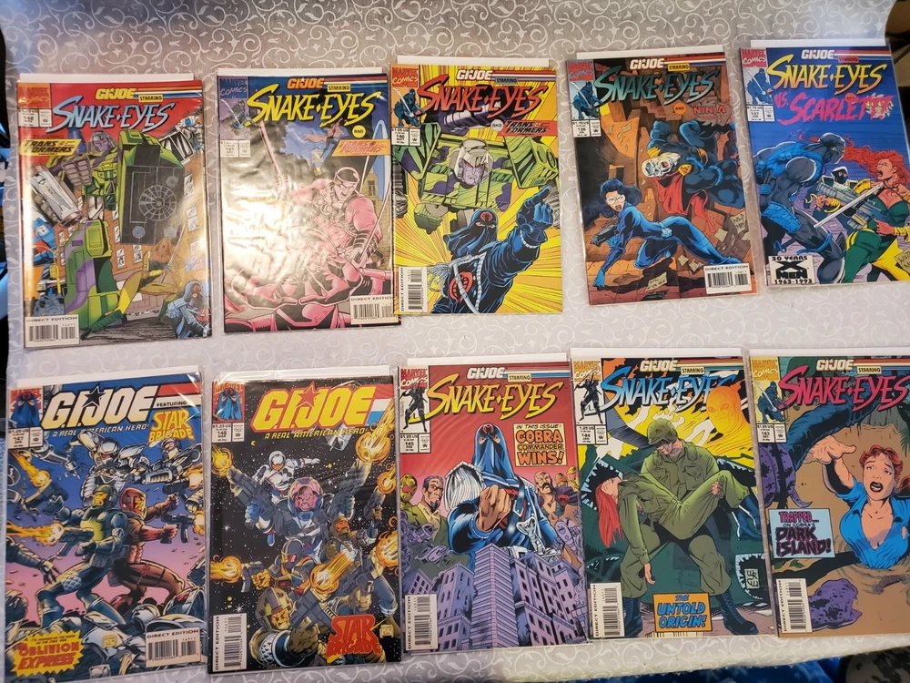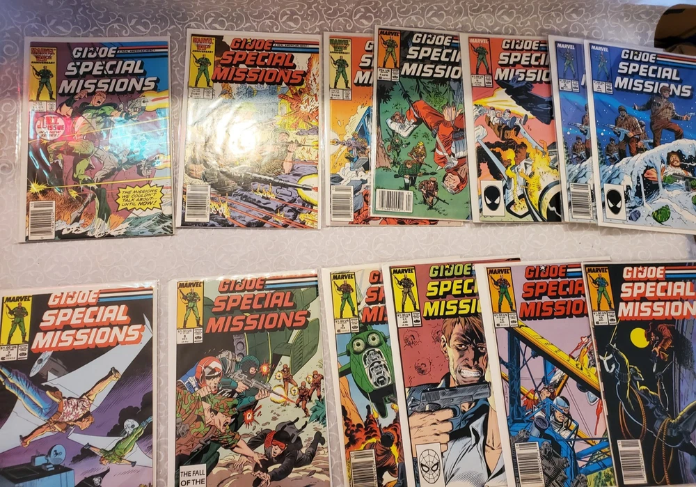 ARAH Comics included are #s 147, 146, 145, 144, 143, 142, 141, 140, 138, 137, 136, 135, 134, & 90. Special Missions included are #s 1, 2, 3, 4, 5, 6 times 2 (Direct & Newsstand) , 7, 8, 9, 11, 12, 15. This G I Joe Comic Lot includes 27 vintage comic books from the A Real American Hero series, featuring characters like GI Joe, Baroness, Destro, and Cobra Commander. Published by Marvel Comics between 1986 and 1994, these monthly comics are in color and come boarded, bagged, and in 1st edition format. With a mix of action, adventure, humor, and drama, this comic lot is a must-have for fans of the GI Joe universe and collectors of US comics from the Copper Age. The lot also includes special missions and story titles from the series, offering a comprehensive look into the world of G.I. Joe. Shipped safely and securely usually on the next business day. Please see pics for item condition. Pics are not meant to be complete representation of wear or defect.