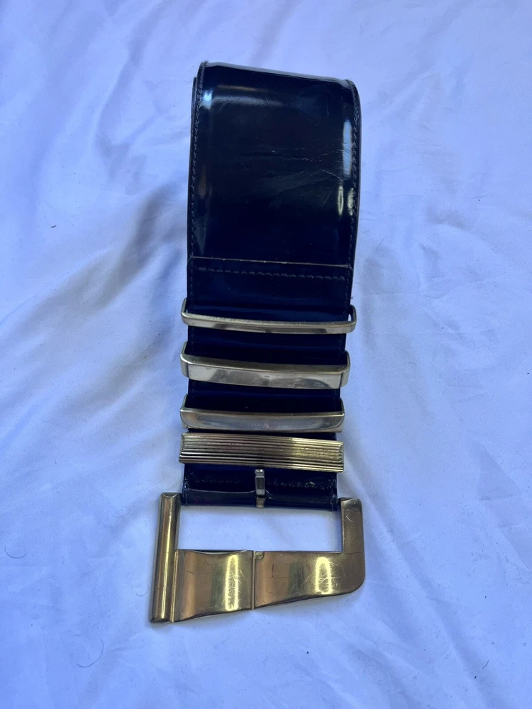 Vintage: Yes Department: Women Size: One Size Material: Leather Pattern: Solid Style: Adjustable Belt Features: Buckle, Adjustable Accents: Buckle Brand: Versace Personalize: No Hardware Material: Gold-Plated Type: Belt Color: Black Theme: Metal Belt Width: Wide MPN: Does not apply gtin13: Does not apply Handmade: No Character: Angel, Andrea Country/Region of Manufacture: Italy Waist Size: 31-33 in Size Type: Regular UPC: Does not apply