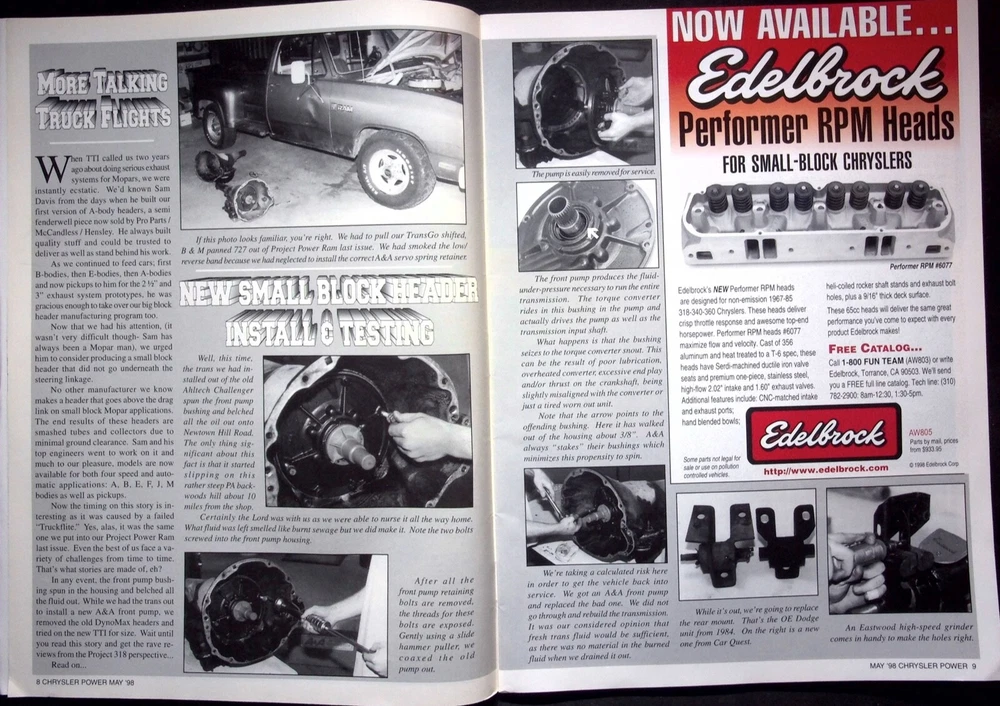 Take advantage of the magazine?s flat-rate shipping in the same package! Adding two or more to your shopping cart and checking out the flat rate will apply. Feel free to reach out if there are any problems, and I can always send you an invoice with the flat rate. CHRYSLER POWER MAGAZINE, MAY 1998 The magazine has minor wear; please look at the magazine photos. See the seller’s listings for full details and a description of any imperfections. We will be listing new magazines regularly; please follow our store. This magazine will be shipped in a vinyl bag to achieve the cheapest first-class rate due to the advertisement in the magazine; we can't ship media mail. MAKE AN OFFER by clicking the "MAKE OFFER" Button WE DO OFFER COMBINED SHIPPING ON ALL ORDERS. The magazine has minor visible wear . It may have very minimal identifying marks on the inside cover or outside. There are no missing pages, some creases, tears, or underlining/highlighting of text or writing in the margins. No matter what happens, If you need additional information on this product, feel free to contact us, and we will provide it ASAP.