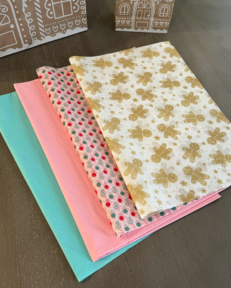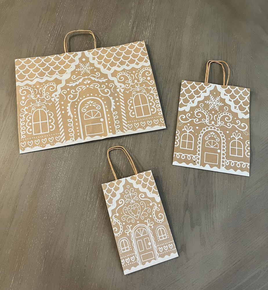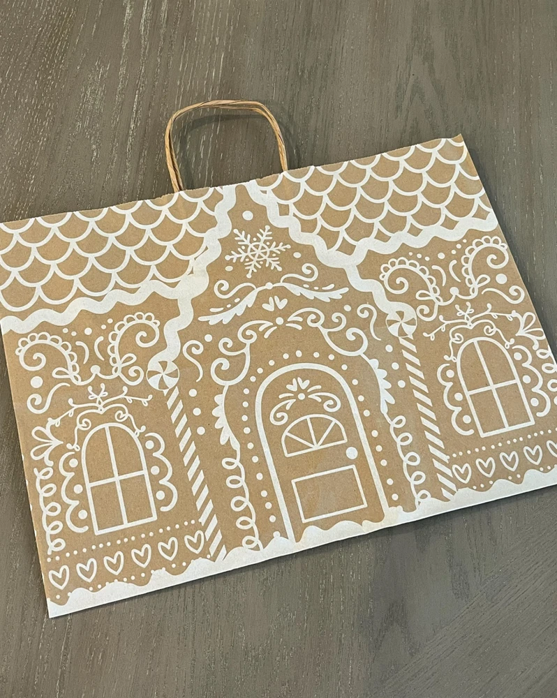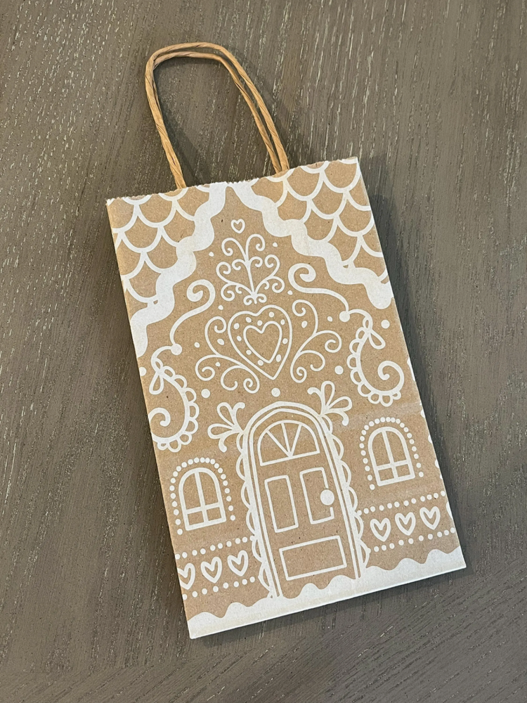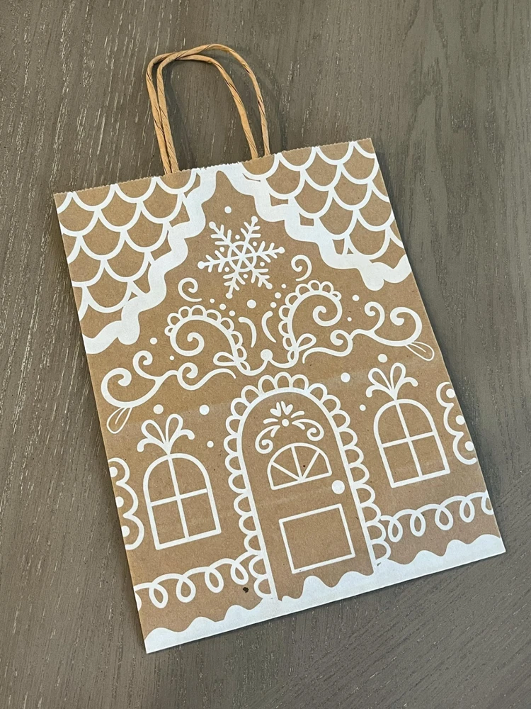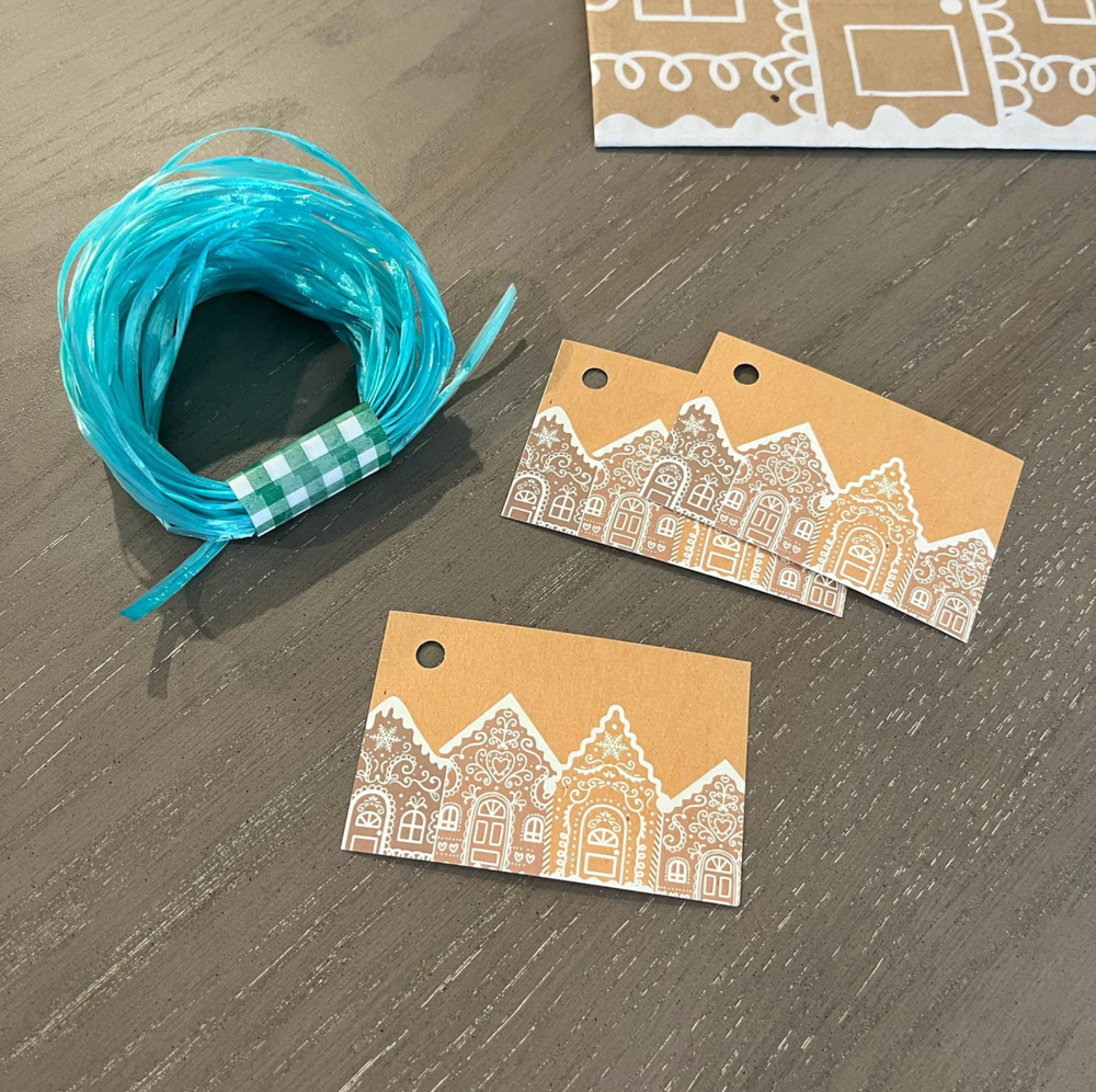 GINGERBREAD COTTAGE Gift Bag Bundle with Tissue Paper, Gift Tags, Raffia Ribbon