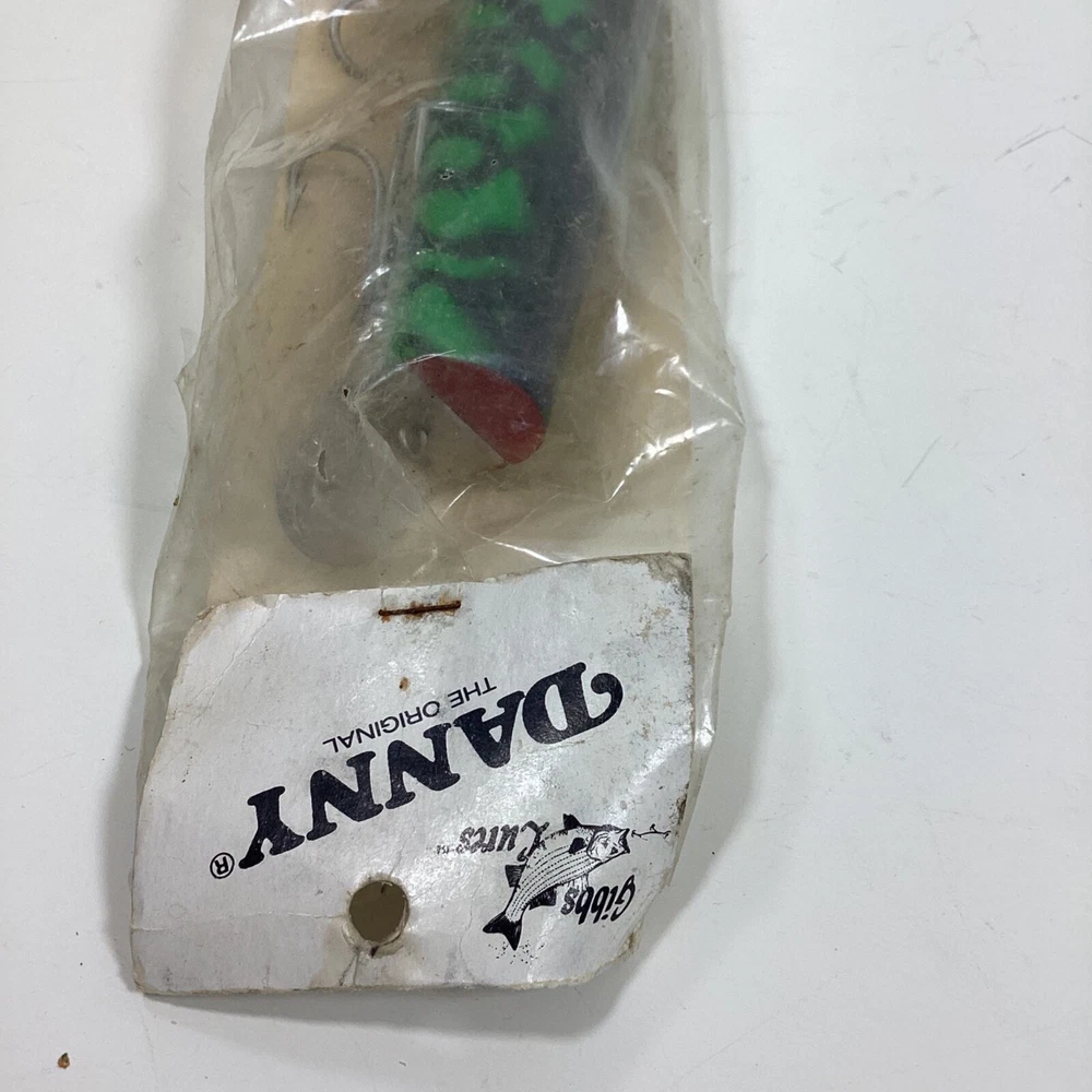 GIbbs Fishing Lures Wood Danny The Original Made In The USA New, Old Stock Sealed With Damaged Packaging From Storage Measures Approximately 9" Long Green And Black