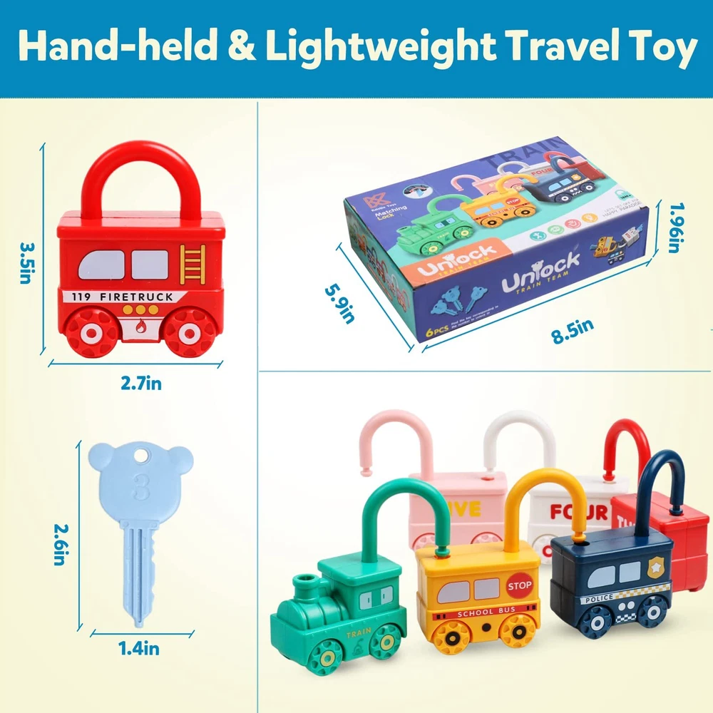 GKDOMS Montessori Learning Toys Sorting & Matching Locks and Keys Toddlers Sensory Car Activity Fine Motor Toy, Thank You Birthday Gifts for Kids Age 2-5 Years, Back to School Package Contain: 6 vehicles + 7 keys + 1 key ring 【6-Pack Fun Learning Toy Locks and Keys Set】This Montessori Kids Learning Toy Car Set comes with 6 lock-shaped vehicles, 6 keys(plus 1 skeleton key) and key ring. Kids are fascinated with the train,ice cream car, school bus, police car, firetruck, ambulance. 【Early Numeric Learning Toys Set】BUILD early math sequencing and number recognition ability, By using words, numbers and countable shapes to teach toddlers 2 3 4 5. Toddlers who fascination for locks and keys, discover new number and color identification skills with every turn of the key. 【Montessori Preschool Learning Toy Set】This Toddler Sensory Activity toy car set is very helpful with teaching counting and fine motor skills as well. Babies can playing as a push car toy. Toddlers discover new number and color identification skills with every turn of the key. 【Safe BPA-free Montessori Locks and Keys Set】The toy cars have bright colors, Smooth with rounded edges and roll well across the floor. The cars & keys are sized well for small hands.The keys are thick and he has no trouble getting the keys in, it is a little hard to turn the key and unlock but that become easier with more use. 【Fun Learning Toy Cars Gift for Boys and Girls】This montessori educational locks and keys toy cars set is ideal learning toy for a growing toddler. Perfect for curious little minds and who fascination for locks and keys.Suitable for baby 18 months and up, toddler 2 3 4 5 great travel toy. Even great for Homeschool. Ideal gift for Bithday Party, Holidays Carnival, Christmas, Thanksgiving, Easter Basket Stuffers. Package Contain: 6 vehicles + 7 keys + 1 key ring 【6-Pack Fun Learning Toy Locks and Keys Set】This Montessori Kids Learning Toy Car Set comes with 6 lock-shaped vehicles, 6 keys(plus 1 skeleton key) and key ring. Kids are fascinated with the train,ice cream car, school bus, police car, firetruck, ambulance. 【Early Numeric Learning Toys Set】BUILD early math sequencing and number recognition ability, By using words, numbers and countable shapes to teach toddlers 2 3 4 5. Toddlers who fascination for locks and keys, discover new number and color identification skills with every turn of the key. 【Montessori Preschool Learning Toy Set】This Toddler Sensory Activity toy car set is very helpful with teaching counting and fine motor skills as well. Babies can playing as a push car toy. Toddlers discover new number and color identification skills with every turn of the key. 【Safe BPA-free Montessori Locks and Keys Set】The toy cars have bright colors, Smooth with rounded edges and roll well across the floor. The cars & keys are sized well for small hands.The keys are thick and he has no trouble getting the keys in, it is a little hard to turn the key and unlock but that become easier with more use. 【Fun Learning Toy Cars Gift for Boys and Girls】This montessori educational locks and keys toy cars set is ideal learning toy for a growing toddler. Perfect for curious little minds and who fascination for locks and keys.Suitable for baby 18 months and up, toddler 2 3 4 5 great travel toy. Even great for Homeschool. Ideal gift for Bithday Party, Holidays Carnival, Christmas, Thanksgiving, Easter Basket Stuffers. Shipping from the USA All of our products are shipped from the USA, ensuring quick delivery to your destination. Payment We offer the following payment methods: PayPal, credit card, bank transfer, and eBay's secure payment system. Free Shipping & Free Returns Shipping within the USA is FREE. Additionally, any return is absolutely free for you. Risk-Free Purchase You have the option to return an item within 30 days without any justification. We cover the return shipping costs! Fast Shipping We ship immediately upon receipt of payment. Generally, the package is delivered within 2-3 days in the USA. If it takes longer, we will contact you. Quality and Costs Made in Europe, USA, China No customs fees or additional charges Total satisfaction guarantee Invoice with declared VAT available upon request in .pdf format Feedback Your feedback is very important to us. After you pay for your purchase, you will automatically receive positive feedback from us.