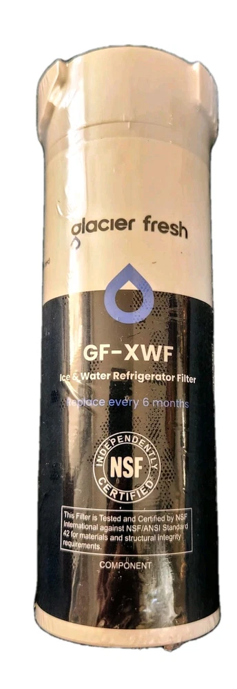 GLACIER FRESH XWF Replacement For GE XWF Refrigerator Water Filter Pack of 1 is a high-quality water filter designed to remove chlorine taste and odor from your drinking water. The filter is made of activated carbon block and carbon/charcoal filtration methods to ensure you get the best taste and purity of water. This filter is compatible with GE XWF models and is suitable for household use. It is made of durable plastic material and has a unit quantity of 1. The filter has a height of 6 inches, a width of 2 inches, and a depth of 2 inches. It weighs 0.5 lbs and is manufactured in China. Get the best tasting water from your refrigerator with this reliable and efficient water filter.