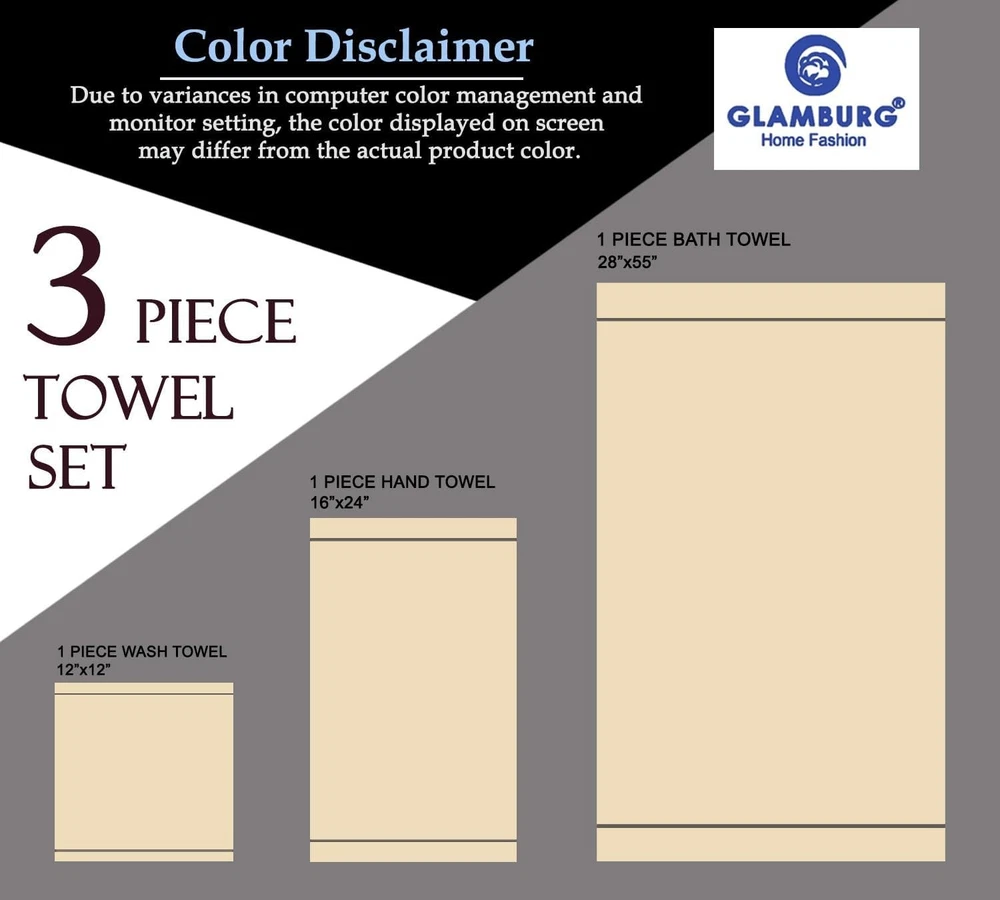GLAMBURG Ultra Soft 3 Pack Cotton Towel Set, Contains a Bath 3 Pink Product Details Color: Pink Brand: GLAMBURG Age Range (Description): All Ages Material: Cotton Product Dimensions: 54.33"L x 11.81"W Number of Items: 3 Style: Casual Pattern: Solid Special Feature: Bagless Size: 3 Pack Set Unit Count: 3.0 Count Fabric Type: 100% Cotton Manufacturer: GLAMBURG Item Weight: 14.9 ounces Each set contains one oversized bath towel 28x55 inches, one hand towel 16x24 inches & one wash cloth 12x12 inches 100% Pure cotton for softness, absorbency & durability - Outdoor Lightweight Quick Dry Towel Set Complimented set for daily use, hotel & spa, quick drying & multipurpose usage 100% Natural materials & free from harmful chemicals / materials - safe for you & your family Machine washable & dryable, wash in cold water, tumble dry low - wash separately before first use GLAMBURG cotton towel sets is a beautiful and carefully crafted product with lot of attention to details. Basic towel, quality product, low cost, everyday use, soft feel and high absorbant. Eco friendly. Its less weight help to consume less water in washing, less energy in drying, less detergent for laundry. Sustainable product without compromising on the comfort and style. Made in a state of the art vertically integrated facility.