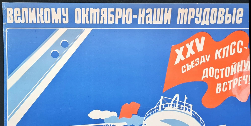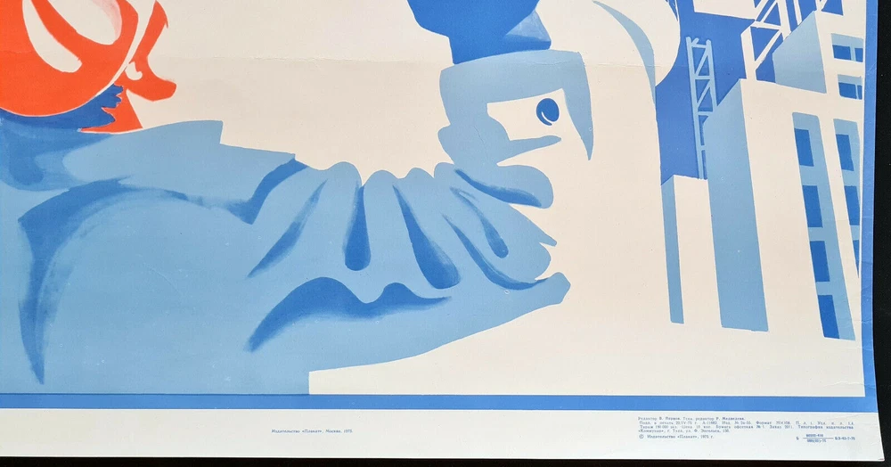 Original slogan on the poster: ВЕЛИКОМУ ОКТЯБРЮ - НАШИ ТРУДОВЫЕ УСПЕХИ! XXV СЪЕЗДУ КПСС - ДОСТОЙНУЮ ВСТРЕЧУ! Literally English translation: FOR THE GREAT OCTOBER - OUR LABOR SUCCESSES! XXV CONGRESS OF THE CPSU - A WORTHY MEETING! POSTER ARTIST: BABIN NIKOLAY & OVASAPOV IGOR PRINT YEAR: 1975 SUBJECT: CPSU CONGRESS PLANS LANGUAGE: RUSSIAN PRINT RUN: 190.000 PUBLISHED BY: "PLAKAT", MOSCOW SIZE: IN: 27 ½ x 39 ⅜ = CM: 70 x 100 CONDITION: FLAT (SHIPPING ROLLED), VERY GOOD The poster has one horizontal fold, creased area at to left corner, that was tape repaired, plus the poster was flattened under professional press and all of the defects are much less to see now and definitely will looks incredible alive under frame. Shipping rolled in a hard plastic tube. For more condition information please feel free to require additional pictures or video. www.facebook.com/sovietartposters Listing and template services provided by inkFrog