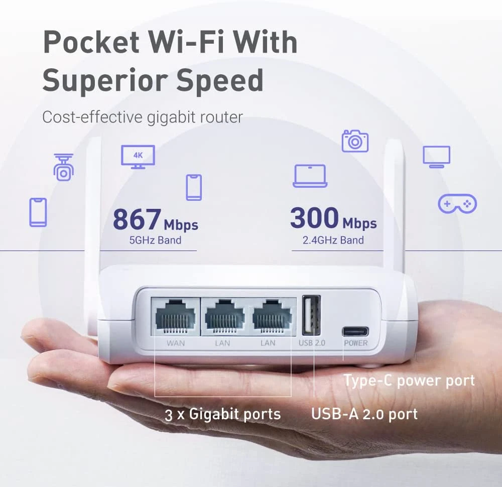 Store New Arrivals Add to Favorite View Feedback Contact GL-SFT1200 (Opal) Secure Travel Wifi Router, AC1200 Dual Band Gigabit Ethernet Wireless Network, Ipv6 USB 2.0 MU-MIMO DDR3, 128MB Ram Repeater Bridge Access Point Mode, Router for Public Use Description Wireless Compability 802.11ac LAN Port Bandwidth 10/100/1000 megabits_per_second Control Method Touch Is Electric Yes Wireless Communication Standard 802.11ac Operating System OpenWrt Model Number GL-SFT1200 Frequency Band Class Dual-Band Model Name GL-SFT1200 Additional Features Access Point Mode, Internet Security Number of Antennas 2 RAM Memory Installed 128 MB Antenna Location Gaming, Business AntennaType Fixed Number of Ports 3 Connectivity Technology Wi-Fi, USB, Ethernet Special Feature Access Point Mode, Internet Security Item Dimensions L x W x H 4.65"L x 3.35"W x 1.18"H Data Transfer Rate 1200 Megabits Per Second Color White Compatible Devices Gaming Console, Security Camera, Personal Computer, Tablet, Smartphone Frequency 5 GHz Voltage 5 Volts Built-In Media User Manual, GL-SFT1200 (Opal) router with 2-year warranty, Power Adapter (US Plug), Ethernet Cable Recommended Uses For Product Gaming, Business Included Components User Manual, GL-SFT1200 (Opal) router with 2-year warranty, Power Adapter (US Plug), Ethernet Cable 【AC1200 Dual-band Wireless Router】Simultaneous dual-band with wireless speed up to 300 Mbps (2.4GHz) + 867 Mbps (5GHz). 2.4GHz band can handles some simple tasks like emails or web browsing while bandwidth intensive tasks such as gaming or 4K video streaming can be handled by the 5GHz band. 【Pocket-friendly】Lightweight design(145g) which designed for your next trip or adventure. Alongside its portable, compact design makes it easy to take with you on the go. 【Full Gigabit Ports】Gigabit Wireless Internet Router with 2 Gigabit LAN ports and 1 Gigabit WAN ports, ideal for lots of internet plan and allow you to connect your wired devices directly. 【Keep your Internet Safe】IPv6 supported. OpenVPN & WireGuard pre-installed, compatible with 30+ VPN service providers. Cloudflare encryption supported to protect the privacy. 【Repeater for Public WiFi】Convert a public network(wired/wireless) to a private Wi-Fi for secure surfing. In general, most of the Free Public Wi-Fi hotspot set a time limit for users, which will disconnect your devices once the time is over. To deal with this situation, please reconnect your router to the wifi. ***Do NOT support easytethering*** 【Enable VPN or AdGuard Home Easily】Immediately enable/disable your selected feature(AdGuard Home or OpenVPN Client or WireGuard Client) through the physical toggle switch. ***The default setting of the button is NO Function, you need to set it in the admin panel before using this function.*** Product Description ABOUT US We offer the best prices around on high quality products. Our E-store includes media such as books, movies, music and games while offering electronics, toys, sporting apparel, clothing, tools, general home, garden items and more. SHIPPING We are always working hard to ensure your package arrives as soon as possible. Please understand that some factors like weather, high postal traffic, and the performance of shipping companies are outside of our control. We offer free shipping to the lower 48 states and ship within 2 business days of payment, usually sooner. We do not accept P.O. Boxes. Please provide a physical address. For shipping outside of the continental USA, we only use eBay's Global Shipping Program.The item is shipped to KY and then sent to the rest of the world. International customers are responsible for all duties and taxes. Continue to check out in order to calculate costs for shipping the item to your country. Messages regarding eBay's Global Shipping Program MUST be directed at eBay EXCLUSIVELY. RETURNS We offer a 30-Day Return Policy on items which you are not completely satisfied with. You have the option for a full-refund or an exchange of the item. No returns are available on items shipped outside of the USA. PAYMENT We accept PayPal. CONTACT US This page content is yet to come Please ad us to your favorite seller and visit again later Thank You CUSTOMER SATISFACTION We try our very best to make sure every customer is completely satisfied. If there's a problem, message us! We're happy to help. WE ACCEPT Copyright © 2021 AutoDS. | All Rights Reserved