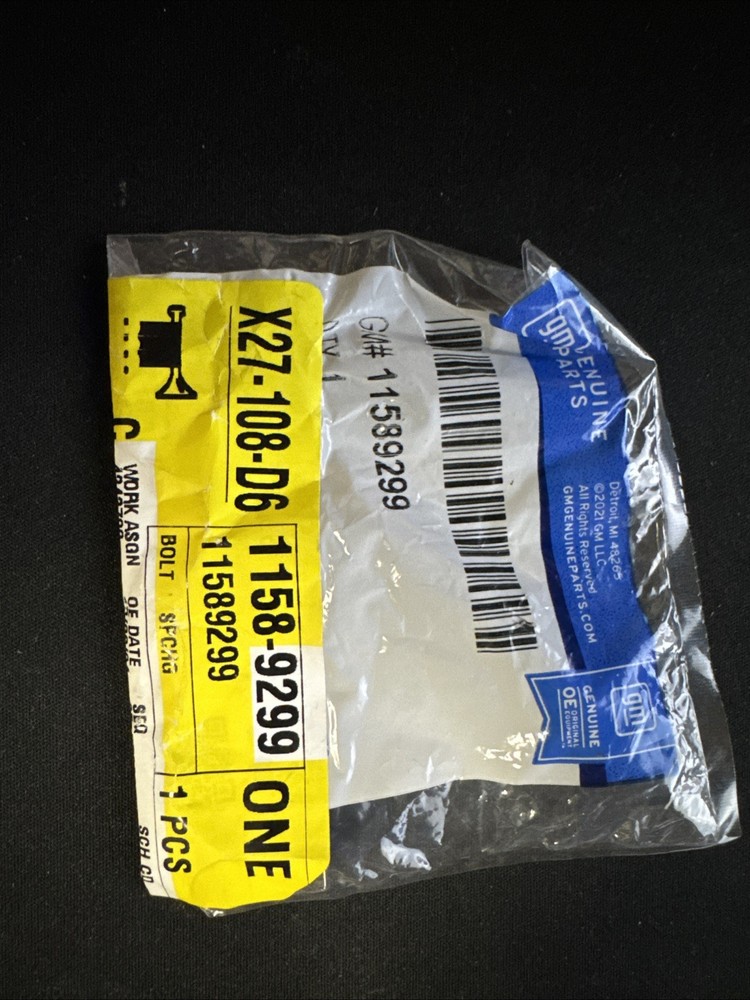 The GM Genuine Parts Multi-Purpose Bolt, with part number 11589299, is a silver-colored bolt designed for front placement on vehicles. Made by GM, this bolt is an original equipment manufacturer (OEM) part that comes with the necessary items included for easy installation. Ideal for car and truck parts and accessories, this multipurpose bolt is a reliable choice for exterior parts and accessories, particularly in the bumper inserts and covers category.