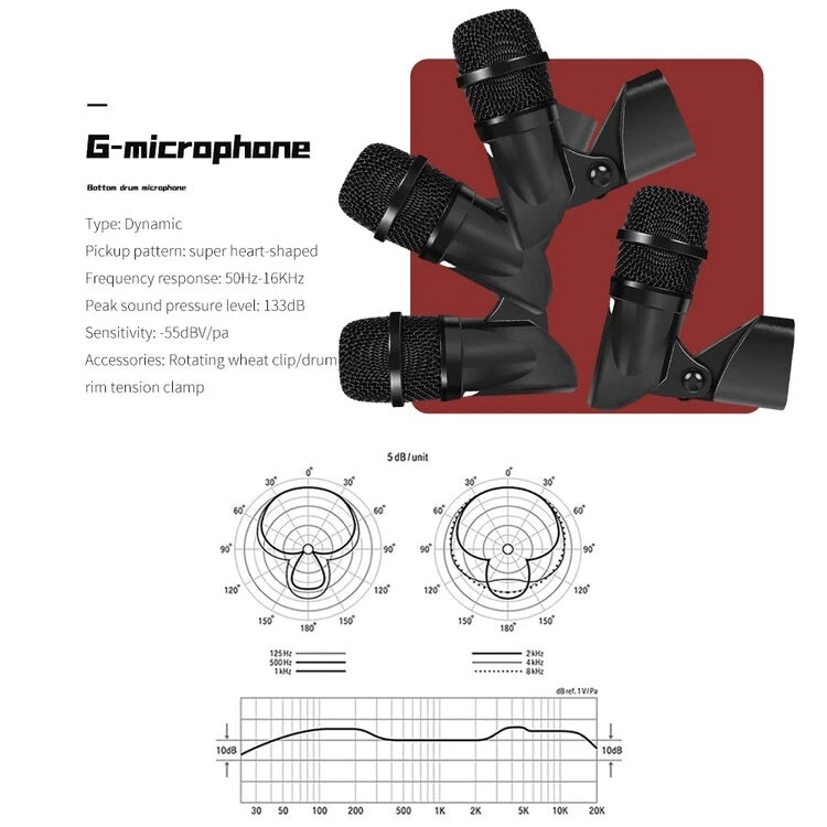 G-MARK 7-Piece Drum Mics, G7 Dynamic Drum Microphone Kit for Bass/ Kick Drum..