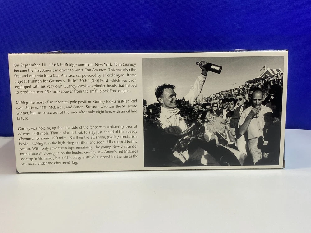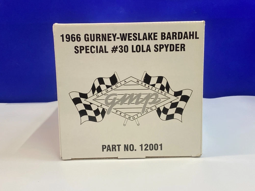 UP FOR YOUR CONSIDERATION IS A GMP 1/18 SCALE 1966 GURNEY WESLAKE BARDAHL SPECIAL #30 LOLA T70 SPYDER . ITEM IS #0144. ITEM IS NEW IN THE PACKAGE. CAR & BOX LOOK TO BE IN NICE CONDITION. ITEM WAS ONLY TAKEN OUT OF BOX FOR INSPECTION. CHECKOUT PICTURES FOR FURTHER DESCRIPTION. THE ITEM IN THE PICTURES IS THE ITEM YOU WILL RECEIVE. WILL BE PACKAGED AND SHIPPED WITH CARE. THANKS FOR LOOKING.. I PACK ALL ORDERS WITH CARE AND SHIP THEM IN A TIMELY MANNER TO ENSURE SAFE ARRIVAL OF YOUR GOODS. IF SOMETHING ARRIVES AND IS NOT TO YOUR SATISFACTION, PLEASE LET ME KNOW AND I WILL MAKE IT RIGHT. FEEDBACK WILL BE GIVEN TO BUYERS, WHEN FEEDBACK IS GIVEN TO SELLER. THANK YOU FOR YOUR BUSINESS.