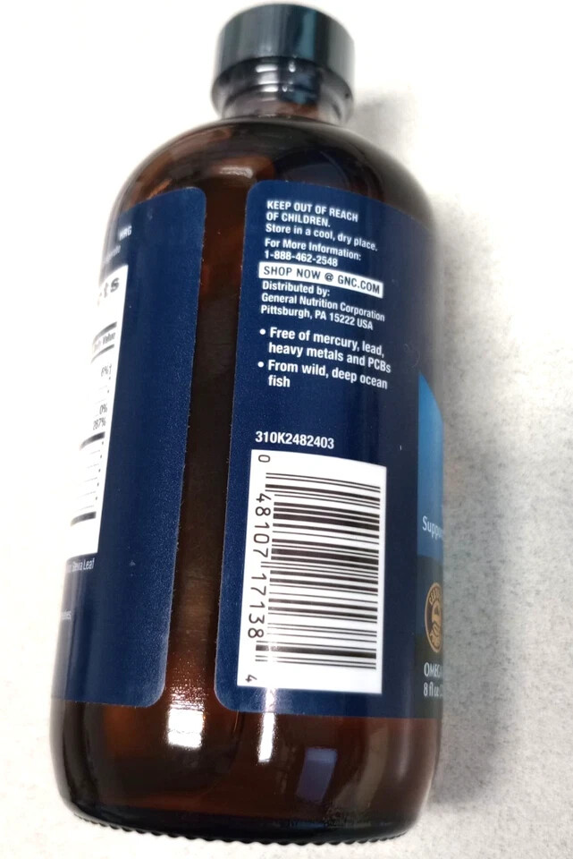 GNC Triple Strength Orange Flavored Liquid Fish Oil 8oz Exp 01/2027