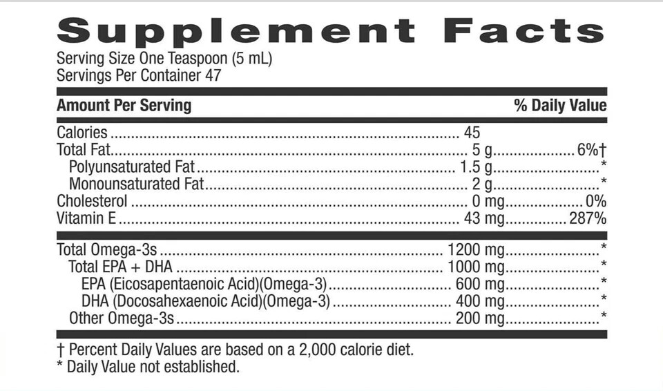 When to Take: After Meal Formulation: Liquid Type: Vitamin Volume: 8 fl oz Main Purpose: Heart Health, Joint Support Features: Gluten-Free Flavor: Orange Ingredients: Fish Oil Number of Pills: 47 Active Ingredients: Fish Oil, Omega-3 Brand: GNC