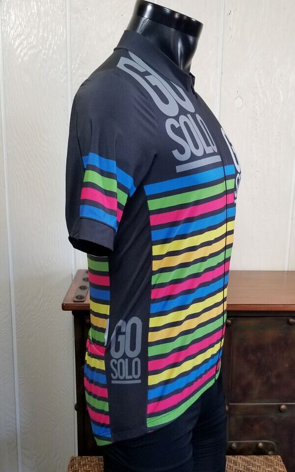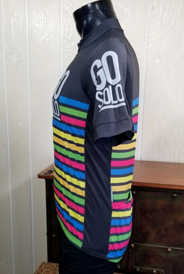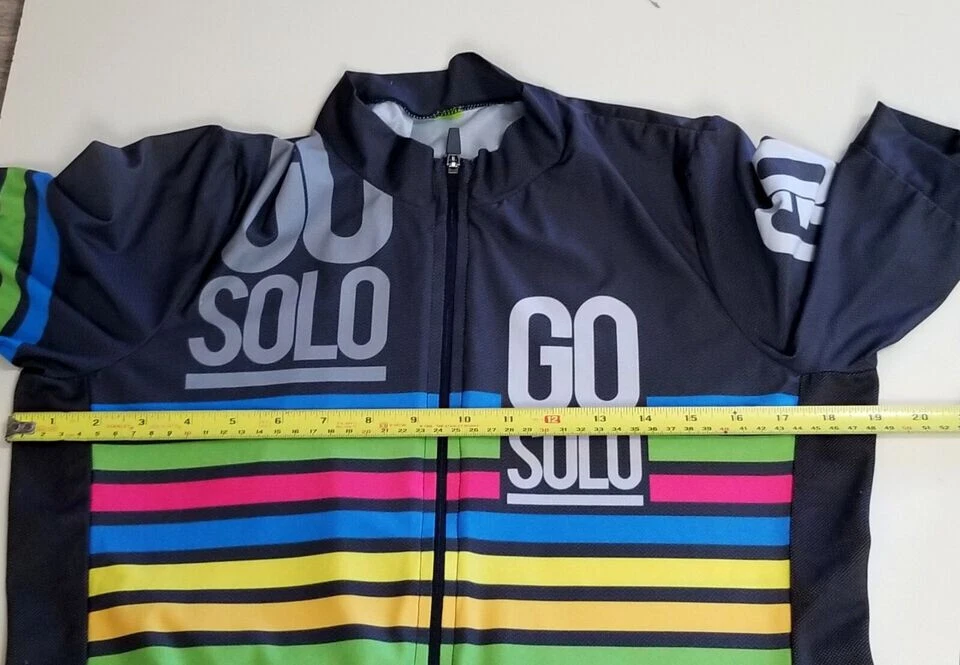 An Incredible one time opportunity to own this collector GO SOLO Full Left Zip Bike Cycling S/S Jersey Sz L *Note: Tag Missing ***See last photos for abrasion snags at side panels, and snag at inside collar Size tag Missing ***PIT TO PIT IS 19 in ***VIEW ALL MEASUREMENT PHOTOS FOR PROPER FIT**** Explore the in depth photos showing every angle possible as if you have it in your hands. Thank you from all of us at DPACTIVEXPRESS ***Note 1: Display stands not included with all items unless specifically stated in the title. ****Note 2: DPACTIVEXPRESS carries a diverse collection of brands in this category, so we take a pit to pit measurement photo. ~~~~~~~ITEM IN THE LISTING PHOTOS IS THE ITEM YOU WILL RECEIVE~~~~~~~~~~~