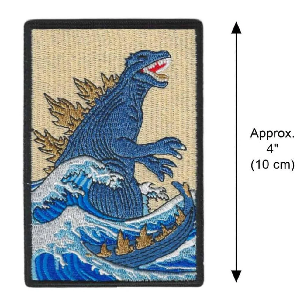 Iron On Patch Iron On Patch Description This brand new embroidered iron-on patch is well made with excellent details. It's a stylish accent for jackets, shirts, hats, bags or jeans. Details CONDITION: BRAND NEW DESIGN: Godzilla Great Wave MATERIAL : Embroidered Fabric with Iron On Adhesive Backing SIZE: Approx. 4" tall x 2.6" wide (10 cm x 6.6 cm) IRON-ON INSTRUCTIONS SPRAY WATER ON BACK OF PATCH PLACE PATCH ON GARMENT SET IRON TEMP TO 120-150 DEGREES OR "COTTON" SETTING COVER PATCH WITH A DAMP PIECE OF CLOTH IRON FOR 15-20 SECONDS, WAIT & REPEAT TURN GARMENT INSIDE OUT AND IRON UNTIL DRY LET COOL, CHECK ADHERENCE AND REPEAT STEPS 4 & 5 IF NEEDED STITCH PATCH ON FOR ADDED STRONGEST ADHERENCE. Shipping Shipping charges calculated to location. International Buyers International shipping charges are calculated to location in the 'Shipping and Payments' tab near the top of this page. Import duties, taxes, and charges are not included in the item price or shipping cost. These charges are the buyer's responsibility. Please check with your country's customs office to determine what these additional costs will be prior to bidding or buying. 'International First Class Mail' can take up to 6 business weeks for delivery depending on destination country, destination customs, and local or origin peak holiday shipping season. Faster 'International Priority Mail' shipping options are also available at checkout for most items. About Us The Tiny Dragon is a U.S. owned and operated 'e-retail' company. Our mission is to provide unique and affordable items of quality, promptly delivered to your complete satisfaction. Our items are shipped directly to you from our headquarters in beautiful Portland, Oregon USA. View our entire inventory at: At 'The Tiny Dragon' you are a valued customer and it is always our pleasure to serve you.