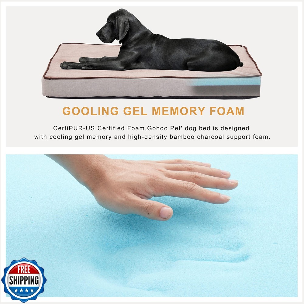 GOHOO PET Orthopedic Memory Foam Dog Bed, Cooling Dog Beds for Medium/Large Dogs -Waterproof Pet Bed for Crate with Removable Washable Cover (M(29inch,45Lbs)) Features CertiPUR-US Certified Foam: Gohoo Pet' dog bed is designed with cooling gel memory and high-density bamboo charcoal support foam, has a constant temperature effect, which can keep your dog warm in winter and cool in summer. High-density foam supports the dog's body and reduces joint pressure. Warm & Soft: Dogs directly contact the quality of soft fur fabric, soft and comfortable; allowing your dog to relax and rest well. Waterproof & Non-silp: Waterproof lining can effectively prevent liquid penetration and pollution inside; Non-slip bottom makes the dog bed can not easily move, and keep safe more. L-Shape Zipper:The zipper design of dog bed can remove the outer cover, which can be machine washable, convenient and easy to care for. It also hides the zipper to make the dog beds look nice. Size Information : Pick the perfect size for your love pet! Available in Medium (29" x 18" x 3”);Large (35”x 22”x 3”);X-Large (41" x 29" x 4”);XX-Large (50" x 34" x 5").Arrives as a vacuum-packed bed in a box, easily unzip and let it inflate for up to 72 hours! Shipping Free & Fast Shipping: We offer free shipping to most of the USA with a normal delivery time of 3-7 days. However, due to the current situation, additional delivery time (up to 3 weeks) may be required for some items. Alternative Carriers: We may use alternative carriers (e.g., USPS, FedEx, UPS) to ensure your package arrives safely and on time. Due to the use of multiple carriers, we are unable to provide a tracking number automatically. Handling Time: Orders are processed and shipped within 1-2 business days of receiving cleared payment. Shipping Restrictions: Shipping to Alaska, Hawaii, Puerto Rico, Guam, and other US territories may incur shipping charges or delivery restrictions. Please contact us before ordering, or your order can be refunded/cancelled. State Restrictions: Certain items may not be shipped to California due to state regulations. Contact for Tracking Updates: If you require tracking updates or have any concerns about the delivery of your order, please feel free to contact us, and we will be happy to assist you. Return Policy 30-Day Hassle-Free Returns: If you are not completely satisfied with your purchase, you can return the item for free within 30 days of receiving it for a full refund or exchange. Easy Return Process: Contact us, and we will provide you with a prepaid return shipping label and detailed instructions. No Restocking Fee: There are no restocking fees for returns. However, the buyer is responsible for return shipping costs if the return is not due to a seller"s error. Refund Processing: Refunds will be processed within 1 business day of receiving the returned item in its original condition. Feedback Your feedback is extremely important to us. We strive to provide the best products and customer service possible. If you are satisfied with your purchase, please take a moment to leave us a positive review. If you have any concerns or issues with your order, please contact us before leaving negative feedback. We are committed to resolving any problems and ensuring your satisfaction. Contact Us If you have any questions or concerns, please feel free to reach out to our customer support team. You can contact us through the eBay messaging system. We are available Monday to Friday, 9:00 am to 5:00 pm EST, and we will do our best to respond to your inquiry within 24 hours. Thank you for supporting our small family business!