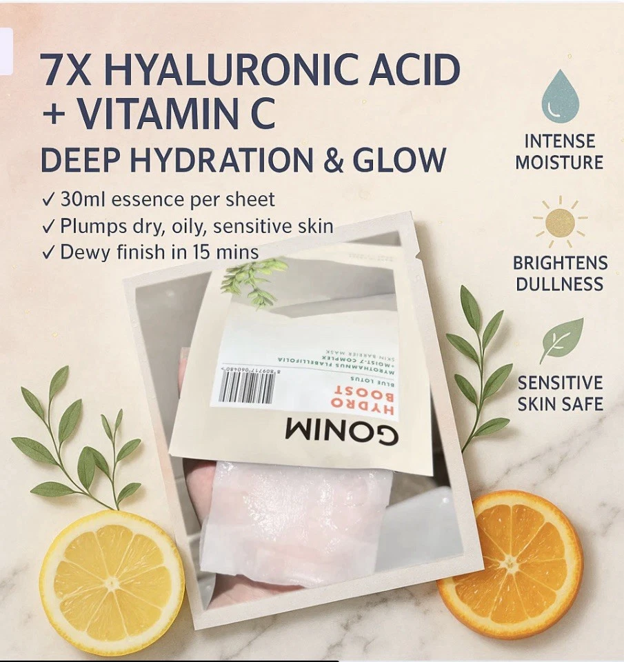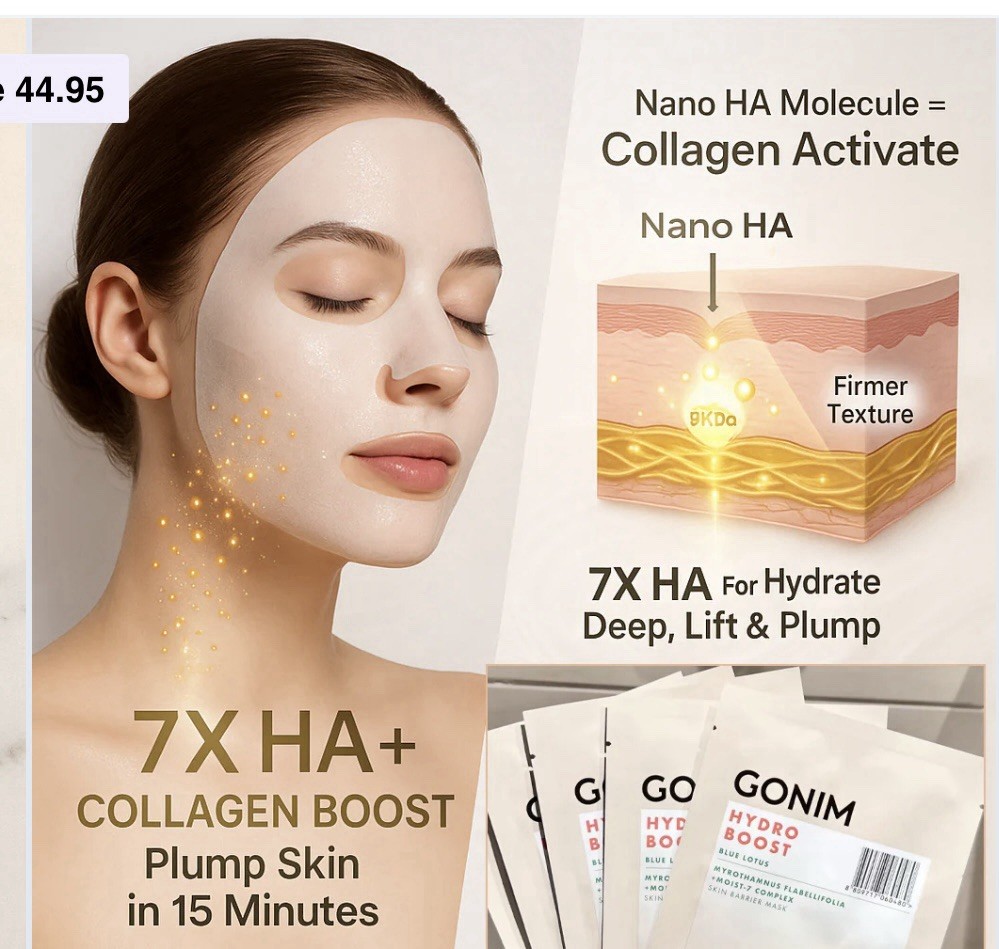 GONIM Face Mask Korean Skin Care with Hyaluronic Acid Serum & Collagen Activatio. 5 individual masks