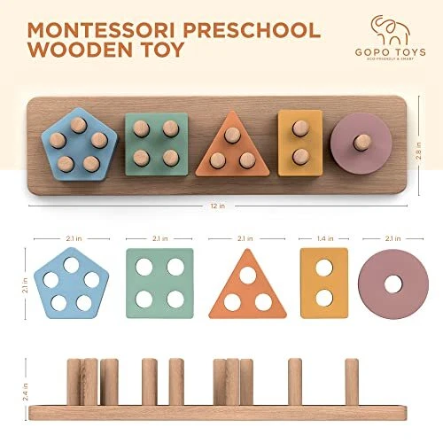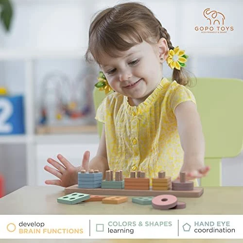 GOPO TOYS Montessori Toys for 18+ Months Old - Toddlers Wooden Sorting and Stacking Toys for Baby Boys and Girls - Shape Sorter and Color Stacker Preschool Kids Wood Gifts 👶 MONTESSORI STACKING TOYS FOR TODDLERS - Our montessori sorting toy is the PERFECT CHOICE for you and your toddler as it is made from hiqh quality natural wood with sturdy pegs and durable water-based paint. This baby stacking blocks toy is suitable for 18 months+ toddlers and represents the perfect activity to learn through play! 🧮 HAPPY AND EDUCATIONAL CHILDHOOD - Our toddler learning toy is designed to help children develop their fine motor skills, count and sort and better recognize patterns. This wooden stacking puzzle contains 20 pieces including blocks of 5 different colors and 5 geometric shapes. The oversized pegs and shapes that come with this set are large enough to be easily grasped by tiny fingers - an excellent hand-eye and wrist coordination challenge for your child! 🤏 MULTI-SENSORY DEVELOPMENT - Our montessori developmental stacking toy it’s an easy game that involves mounting one piece on top of the another piece. The geometric blocks have the same size but different colors and shapes. While stacking the blocks, children need to sit and balance core muscles to move hands freely and figure out which shape fits where. This kind of activity will help your toddler to control his body movements which are in coordination with the stacking and sorting activity! 👨👩👧 CHILD-SAFE DESIGN - Our wooden montessori shape sorter toy is made of lightweight natural woods covered with smooth non-toxic water paint. Unlike other montessori toys on the market our wooden stacking puzzle has smooth surface, reinforced pegs and rounded edges - protects the little hands from scratching. This very important detail eliminates the risk of your child being injured and offers complete safety to both the child and the parent! 🎁 AWESOME GIFT FOR A SPECIAL CHILD - If you are looking for an amazing gift for toddlers then you will love our montessori preschool stacking toy. With various multi-play features, the little ones can build it, stack it and thread it, learn shapes and colors from circle to triangle and red to blue or simply build random objects and patterns - a great way to bring a big smile on your child’s face! 👶 MONTESSORI STACKING TOYS FOR TODDLERS - Our montessori sorting toy is the PERFECT CHOICE for you and your toddler as it is made from hiqh quality natural wood with sturdy pegs and durable water-based paint. This baby stacking blocks toy is suitable for 18 months+ toddlers and represents the perfect activity to learn through play! 🧮 HAPPY AND EDUCATIONAL CHILDHOOD - Our toddler learning toy is designed to help children develop their fine motor skills, count and sort and better recognize patterns. This wooden stacking puzzle contains 20 pieces including blocks of 5 different colors and 5 geometric shapes. The oversized pegs and shapes that come with this set are large enough to be easily grasped by tiny fingers - an excellent hand-eye and wrist coordination challenge for your child! 🤏 MULTI-SENSORY DEVELOPMENT - Our montessori developmental stacking toy it’s an easy game that involves mounting one piece on top of the another piece. The geometric blocks have the same size but different colors and shapes. While stacking the blocks, children need to sit and balance core muscles to move hands freely and figure out which shape fits where. This kind of activity will help your toddler to control his body movements which are in coordination with the stacking and sorting activity! 👨👩👧 CHILD-SAFE DESIGN - Our wooden montessori shape sorter toy is made of lightweight natural woods covered with smooth non-toxic water paint. Unlike other montessori toys on the market our wooden stacking puzzle has smooth surface, reinforced pegs and rounded edges - protects the little hands from scratching. This very important detail eliminates the risk of your child being injured and offers complete safety to both the child and the parent! 🎁 AWESOME GIFT FOR A SPECIAL CHILD - If you are looking for an amazing gift for toddlers then you will love our montessori preschool stacking toy. With various multi-play features, the little ones can build it, stack it and thread it, learn shapes and colors from circle to triangle and red to blue or simply build random objects and patterns - a great way to bring a big smile on your child’s face! Shipping from the USA All of our products are shipped from the USA, ensuring quick delivery to your destination. Payment We offer the following payment methods: PayPal, credit card, bank transfer, and eBay's secure payment system. Free Shipping & Free Returns Shipping within the USA is FREE. Additionally, any return is absolutely free for you. Risk-Free Purchase You have the option to return an item within 30 days without any justification. We cover the return shipping costs! Fast Shipping We ship immediately upon receipt of payment. Generally, the package is delivered within 2-3 days in the USA. If it takes longer, we will contact you. Quality and Costs Made in Europe, USA, China No customs fees or additional charges Total satisfaction guarantee Invoice with declared VAT available upon request in .pdf format Feedback Your feedback is very important to us. After you pay for your purchase, you will automatically receive positive feedback from us.
