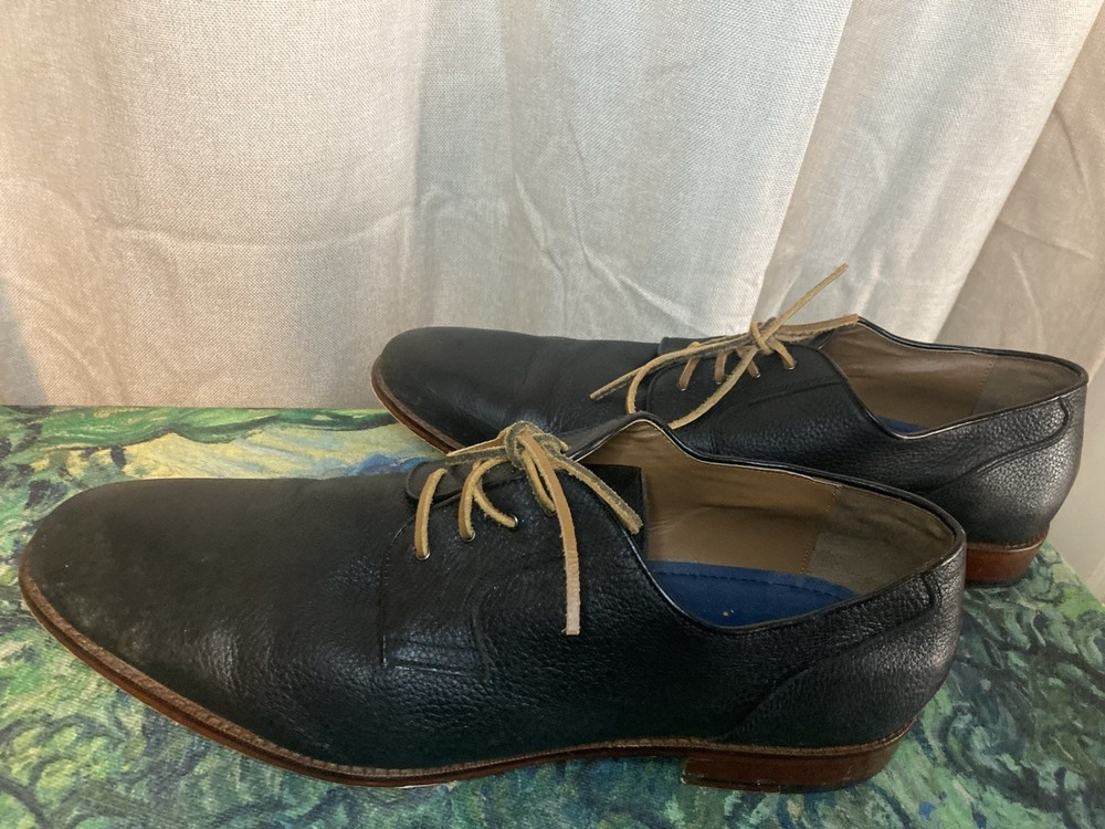 The Gordon Rush 14 Woods Textured Leather Black Derby Oxford Dress Shoes are a stylish and elegant choice for formal occasions. Featuring a lace-up closure and made of high-quality leather, these shoes offer a classic and sophisticated look. The solid black color and medium width make them versatile for a variety of outfits, while the size 14 and UK 13.5 ensure a comfortable fit for larger feet. The oxford style and textured detailing add a touch of interest to the timeless design, making these shoes a standout choice for the modern gentleman.