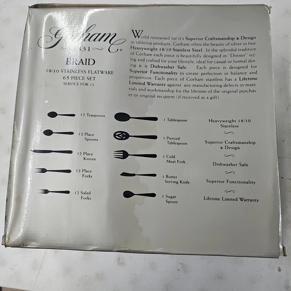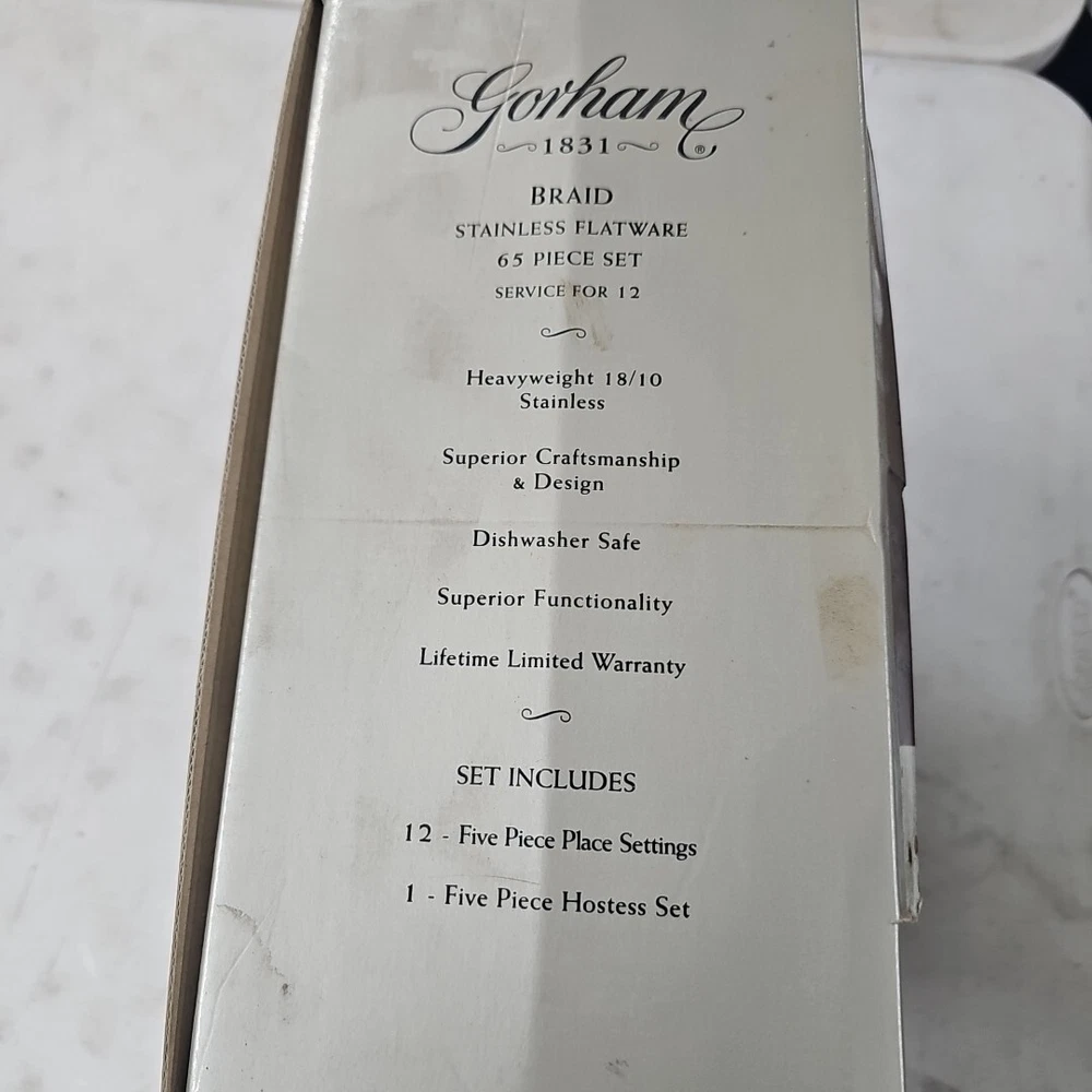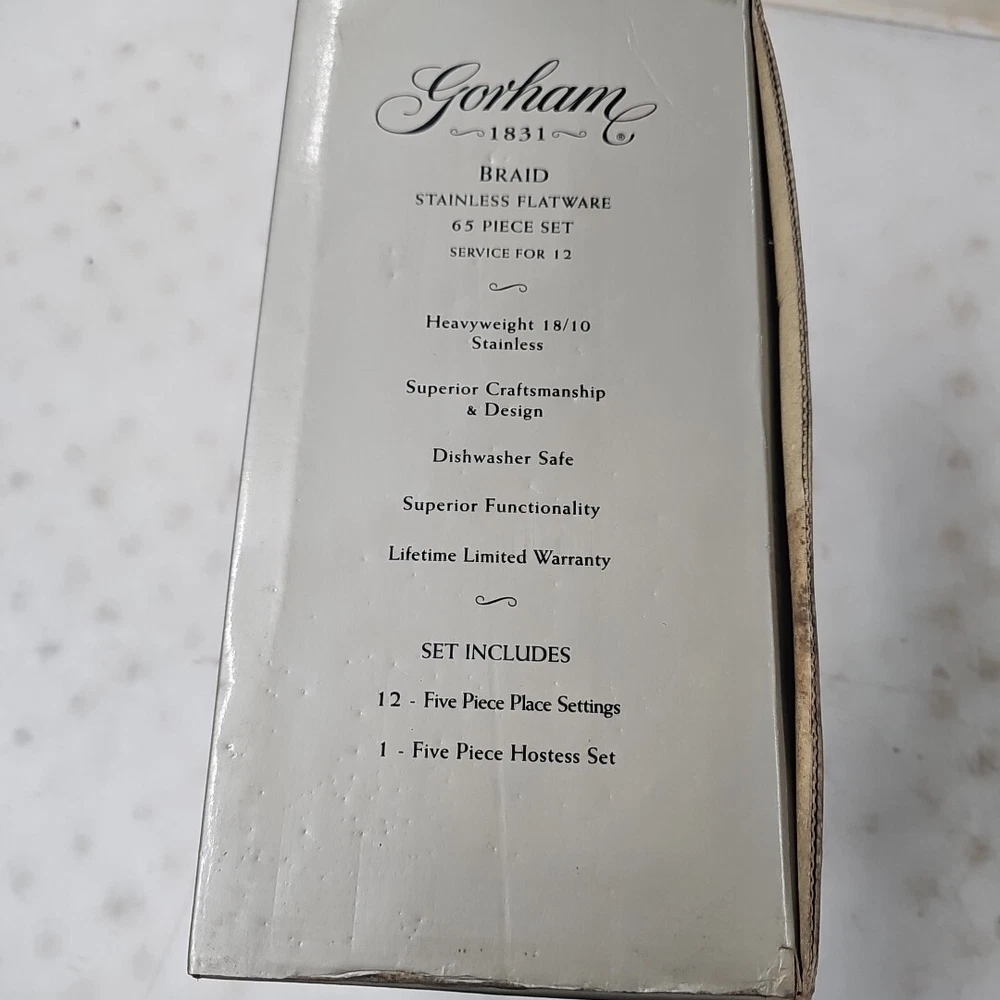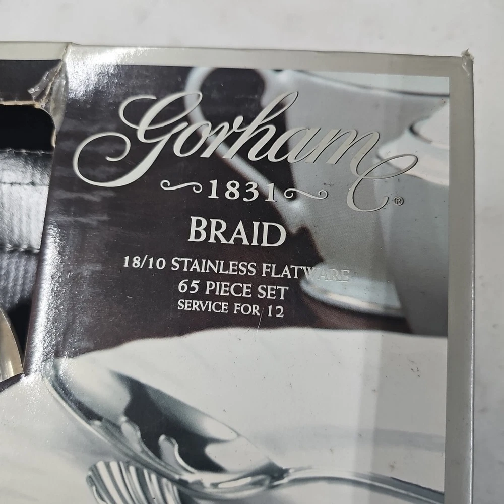 GORHAM 1831 BRAID STAINLESS 65 PIECE DINNER TABLE SET Brand New. Condition is New. Shipped with USPS Ground Advantage.