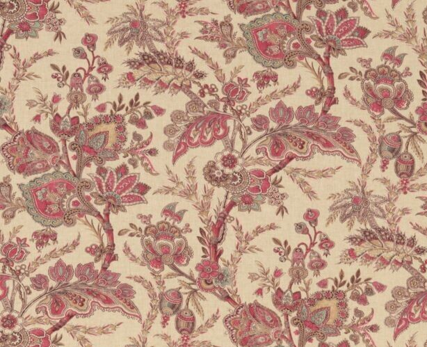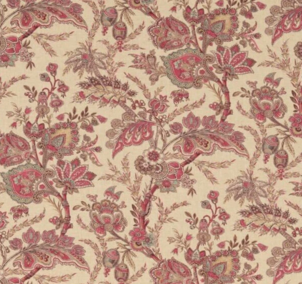 GP & J BAKER FABRIC FROM THE COROMANDEL SMALL COLLECTION DESIGN IS CALLED JEWEL INDIENNE RED AND BLUE COLOURWAY PATTERN REPEAT 69 CM HALF DROP YOU ARE BUYING A PIECE OF FABRIC APPROXIMATELY 8.5 METRES IN LENGTH 1.38 METRES WIDE. 82% VISCOSE 18% LINEN PLEASE NOTE THE FABRIC WILL COME FOLDED