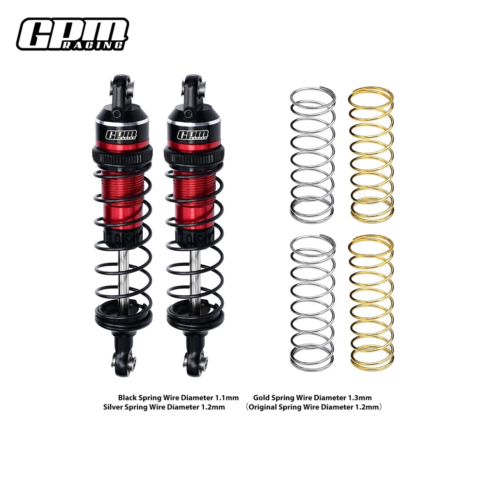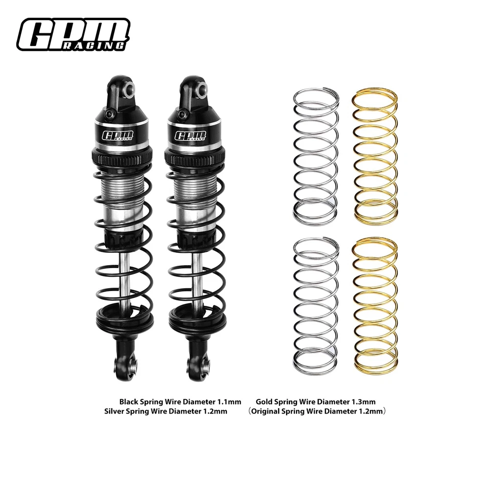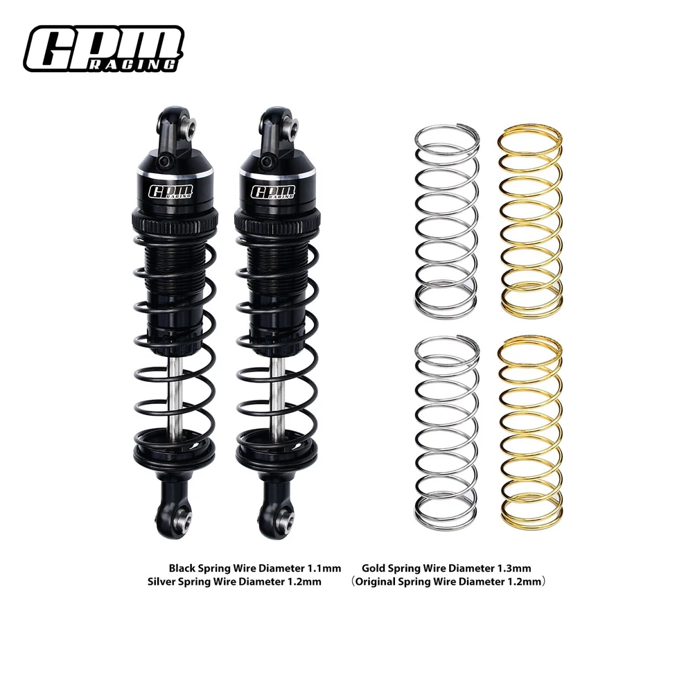 Original part No: 3760、10765 Part location: Front or rear shock area Product major functions & usage: Reduce the friction and absorb the pressure during driving so that the car can be more balanced. Major advantages of upgrading to this part/product: (1) The alloy shock absorbers filled with oil and sealed cover,which is durable and has a good resistance effect. (2) The black spring installed on the shock absorber has a wire diameter of 1.1mm. GPM also ships two additional springs, a silver spring with a wire diameter of 1.2mm and a gold spring with a wire diameter of 1.3mm, which can be replaced according to your own needs Adjustable: How: Adjust the top spring retainer. Purpose: To adjust the hardness of the spring damper. Package includes: Shock-2PCS Silver spring 1.2mm-2PCS Gold spring 1.3mm-2PCS Suitable Model: TRAXXAS Mini Maxx Monster Truck(107154-1) Fast Delivery & No Worries after-sale : We will ship out your order ASAP. Any questions for GPM RACING please check with our highly trained team. We are here to help!
