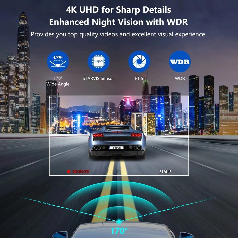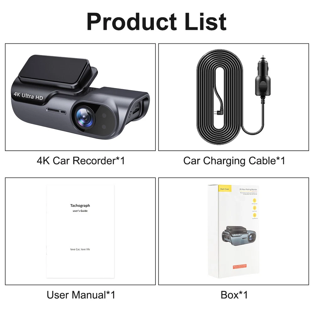 SAFE & SECURE SHOPPING 100% SATISFACTION GUARANTEED FAST SHIPPING NEW GPS 4K Dash Cam Wireless WiFi Front Car DVR Camera Video Recorder G-Sensor.. Product Description Features: 1. 4K Ultra HD: Capture ultra-clear views with 3840x2160P resolution, this car dash camera allowing you to easily record and identify license plates with stunning clarity. 2. WiFi Connectivity: Connect to the car DVR via WiFi to view and download videos on your smartphone app, and effortlessly share them on major social media platforms. 3. Voice Alerts: The dash cam features built-in voice prompts (English only) to conveniently inform you of the DVR's status while driving, enhancing your focus and safety. 4. Wide Angle View: Equipped with a 140° wide-angle lens, this video recorder offers exceptional image quality and a broader field of view, ensuring comprehensive coverage. 5. 24-Hour Monitoring: Optional encrypted protection mechanism provides continuous parking monitoring, this car camcorder safeguarding your vehicle with complete evidence retention. Specification: Video format: TS Compression format: H.264 Power port: Type-c Video resolution: 3840*2160 WIFI function: 2.4GWiFi Motion detection: Supported WDR: Supported Night Vision: starlight night vision Gravity sensing: Supported Support: 3M rubber support Memory: 8G-256G (Class 10 or above, maximum support 256G, not included) Power port: Type-C Video output: NA Recording mode: Loop recording without missing seconds Wide-angle front lens: 140 degrees Maximum photo resolution: Front: 16M 4608x3456 Photo format: JPEG Operating voltage: DC 5V Power cable length: about 3.5 meters Rear camera: approx. 5m Storage temperature (℃) : (-25℃-70℃) Operating temperature (℃) : (-20℃-60℃) Operating humidity (℃) : 15%-60%RH Product list: Recorder *1 Power cord *1 Instructions *1 Product operation: 1. Scan the code manual or QR code on the device to download the APP 2. Turn on the WIFI of the mobile device, enter the APP, click Bind to search bind, initial password: 12345678 3. After the binding is successful, you can select your favorite Settings in the APP operation 4. You can record videos and take photos on the APP to download and save 5. The effective operating distance of the product is within 5-10 meters of binding connection, can not be operated at a distance Note: The product does not contain TF card, the product supports 8-256G Class 10 or above, the maximum support is 256G, please install the memory card in the case of power off operation, the product has a protective film in front of the lens, please tear off before use. Due to different monitor settings and lighting conditions, the actual color of the item may vary slightly from the pictures. Thanks for your understanding! Please allow a 1-2 cm difference in measurements due to manual measuring. Features: 1. 4K Ultra HD: Capture ultra-clear views with 3840x2160P resolution, this car dash camera allowing you to easily record and identify license plates with stunning clarity. 2. WiFi Connectivity: Connect to the car DVR via WiFi to view and download videos on your smartphone app, and effortlessly share them on major social media platforms. 3. Voice Alerts: The dash cam features built-in voice prompts (English only) to conveniently inform you of the DVR's status while driving, enhancing your focus and safety. 4. Wide Angle View: Equipped with a 140° wide-angle lens, this video recorder offers exceptional image quality and a broader field of view, ensuring comprehensive coverage. 5. 24-Hour Monitoring: Optional encrypted protection mechanism provides continuous parking monitoring, this car camcorder safeguarding your vehicle with complete evidence retention. Specification: Video format: TS Compression format: H.264 Power port: Type-c Video resolution: 3840*2160 WIFI function: 2.4GWiFi Motion detection: Supported WDR: Supported Night Vision: starlight night vision Gravity sensing: Supported Support: 3M rubber support Memory: 8G-256G (Class 10 or above, maximum support 256G, not included) Power port: Type-C Video output: NA Recording mode: Loop recording without missing seconds Wide-angle front lens: 140 degrees Maximum photo resolution: Front: 16M 4608x3456 Photo format: JPEG Operating voltage: DC 5V Power cable length: about 3.5 meters Rear camera: approx. 5m Storage temperature (℃) : (-25℃-70℃) Operating temperature (℃) : (-20℃-60℃) Operating humidity (℃) : 15%-60%RH Product list: Recorder *1 Power cord *1 Instructions *1 Product operation: 1. Scan the code manual or QR code on the device to download the APP 2. Turn on the WIFI of the mobile device, enter the APP, click Bind to search bind, initial password: 12345678 3. After the binding is successful, you can select your favorite Settings in the APP operation 4. You can record videos and take photos on the APP to download and save 5. The effective operating distance of the product is within 5-10 meters of binding connection, can not be operated at a distance Note: The product does not contain TF card, the product supports 8-256G Class 10 or above, the maximum support is 256G, please install the memory card in the case of power off operation, the product has a protective film in front of the lens, please tear off before use. Due to different monitor settings and lighting conditions, the actual color of the item may vary slightly from the pictures. Thanks for your understanding! Please allow a 1-2 cm difference in measurements due to manual measuring. Copyright © 2022 Tongtool On Dec 22, 2025 at 01:22:32 PST, seller added the following information: