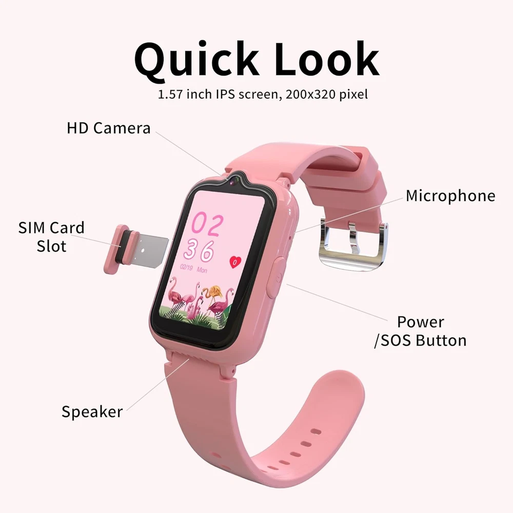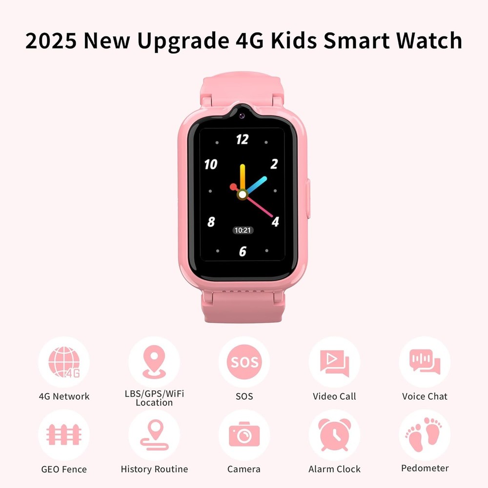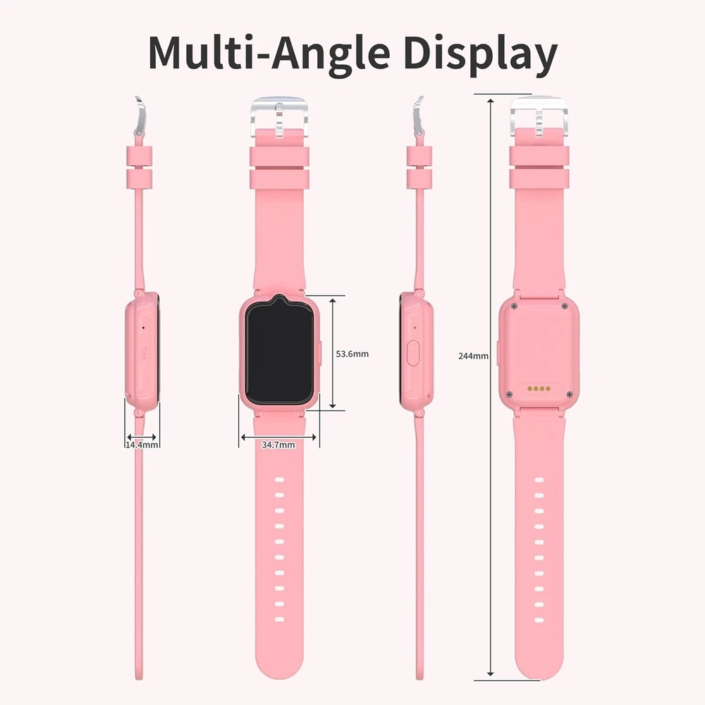Kids Smart Watches Girls with GPS Tracker, Watch for Age 5-12 Pink LuxeFusion Product Description Features 【All-In-One Smart Watch for Kids】 4G Kids smart watches girls feature GPS/WIFI/LBS location, video&phone call, voice chat, SOS ( After inserting the card, long press the power button to trigger the SOS function ). And with some essential tools such as contacts, photo album, camera, calculator, pedometer, timer, class mode and so on. 【GPS Tracker & Safety Features】 kids watch with gps tracker focus on kids security. When kids are outdoor, you can track children's real-time and historical location at any time through the free app "Setracker 2" , supports Android and IOS. You can also set up boundaries which will receive warnings when children get lost or enter dangerous areas. 【HD Voice & Video Calls】 GPS watch for kids supports voice and video calls through WiFi or cellular data. Equipped with HD camera and VOLTE calling technology, provides high-quality voice and video calls. Kids cell phone watch also features voice chat, securely share audio, group messaging, pictures to bring everyone closer together. 【SOS Emergency Call】 Press SOS button about 5 seconds, the kids gps tracker watch will automatically call 3 SOS numbers in 2 rounds until answering the call and send messages to the guardians. Great help for kids in emergency situation by the gps tracker for kids. Due to the issue of network frequency bands, we recommend that the kids watch be used only in the US. 【Specially Designed for Children】 Kids watches for girls is lightweight, durable and easy to use. The slender and compact structure is more suitable for children's wrists. Kids gps watch supports remote monitoring with the parental control app: Only allow calls from added contacts, block incoming calls from strangers, set time limits, and more. NOTE: SIM Card need to be purchased separately and are not included in this package. It is recommended to use Speedtalk (a subsidiary of T-mobile) nano SIM Card. After the SIM card inserted, You need to restart the watch and make sure there is a 4G mark on the screen. If the watch still has no network signal, please setting up the APN. For any questions about how to set up the APN, please contact us at any time. Product Details Package Dimensions: 9.84 x 2.4 x 0.75 inches Item Weight: 2.89 ounces Item model number: G41 Batteries: 1 A batteries required. (included) Manufacturer: Nibour Country of Origin: China Standing screen display size: 1.57 Inches Memory Storage Capacity: 256 MB Operating System: IOS, Android Special Feature: 4G Network, GPS tracker, SOS, Voice & Video Call, Chat, Class Mode, Camera, Pedometer, Alarm, Calculator, Stopwatch 4G Network, GPS tracker, SOS, Voice & Video Call, Chat, Class Mode, Camera, Pedometer, Alarm, Calculator, Stopwatch4G Network, GPS tracker, SOS, Voice & Video Call, Chat, Class Mode, Camera, Pedometer, Alarm, Calculator, Stopwatch See more Battery Capacity: 550 Milliamp Hours Connectivity Technology: USB Wireless Communication Standard: 802.11bgn Battery Cell Composition: Lithium Ion GPS: Built-in GPS Shape: Rectangular Screen Size: 1.57 Inches Free Shipping All orders ship free and fast to your doorstep. Easy Returns Satisfaction guaranteed. 30-day returns, no questions asked. 24/7 Support Contact us anytime; we’re here to help, day or night. Brought to you by LuxeFusion – Quality you can trust.