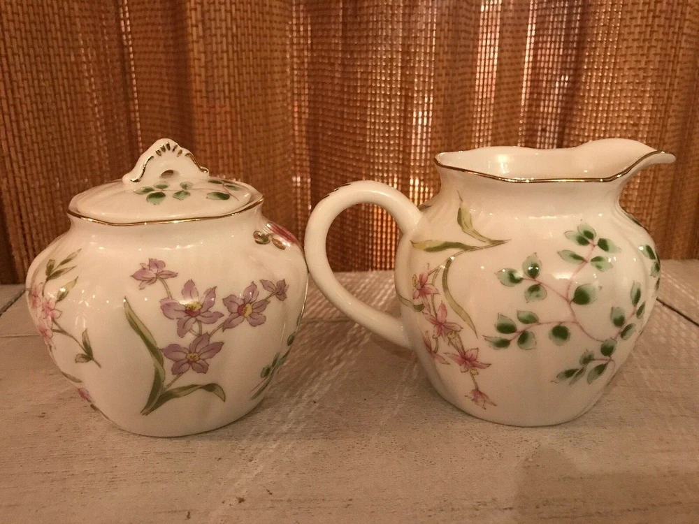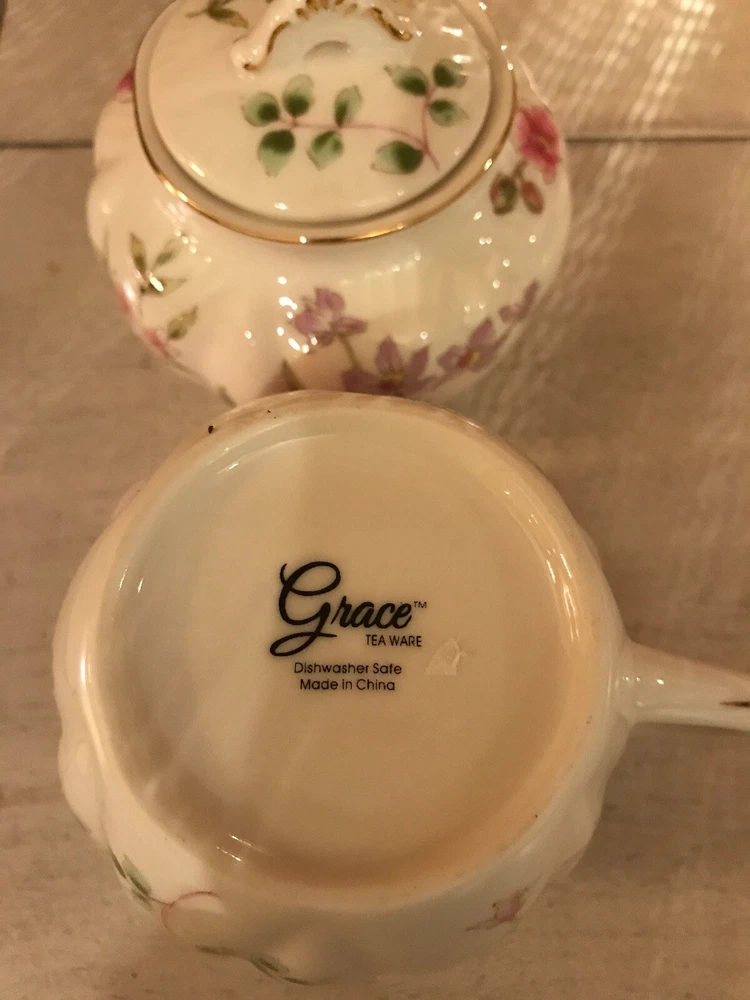 Grace's Teaware Lily Pattern Sugar Bowl with Lid & Creamer New, Never Used Excellent Condition