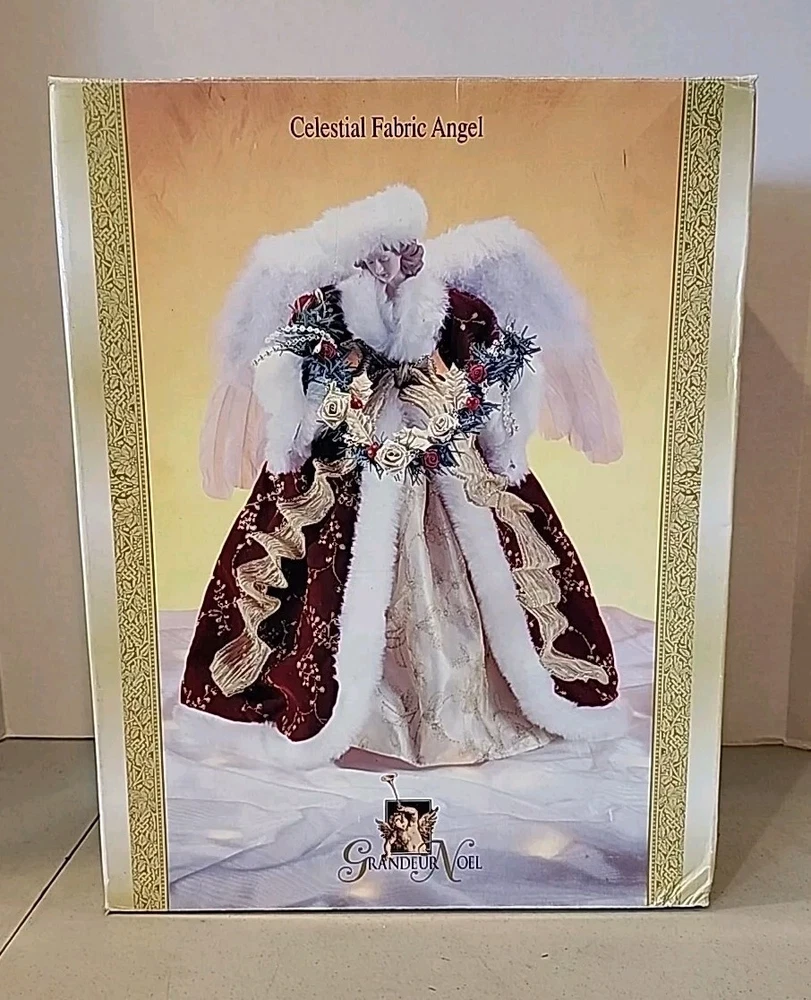 Vintage GRANDEUR NOEL CELESTIAL FABRIC ANGEL 16" Tree Topper, New