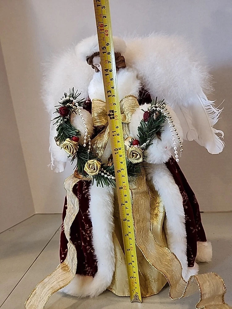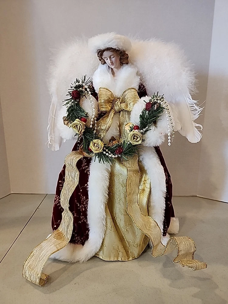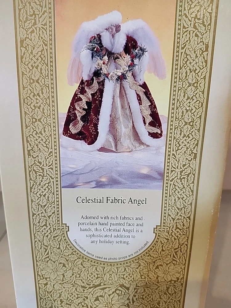 GRANDEUR NOEL CELESTIAL FABRIC ANGEL 16"- red velvet, Tree Topper, Box Included