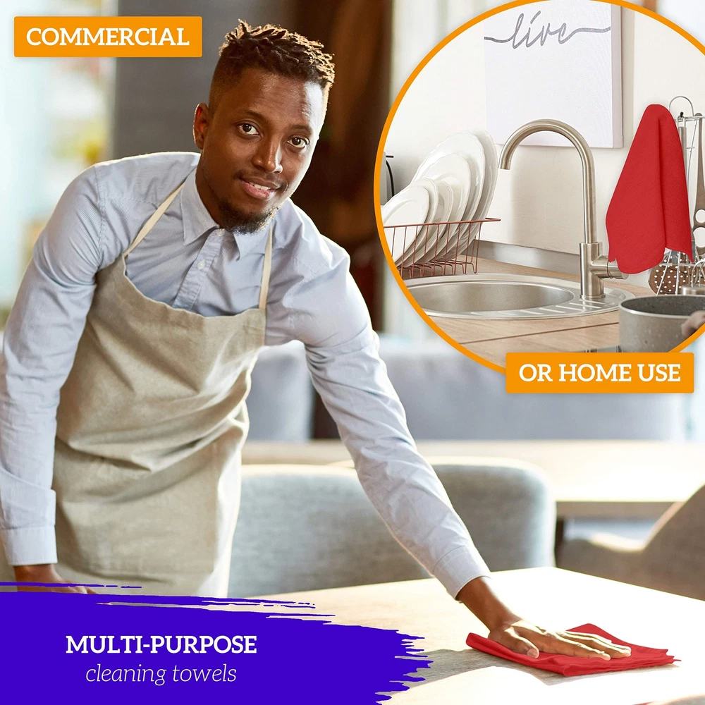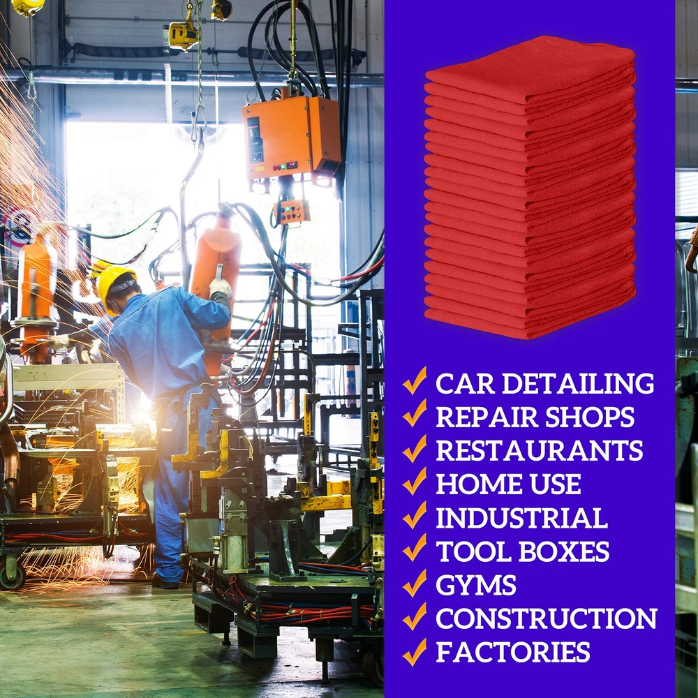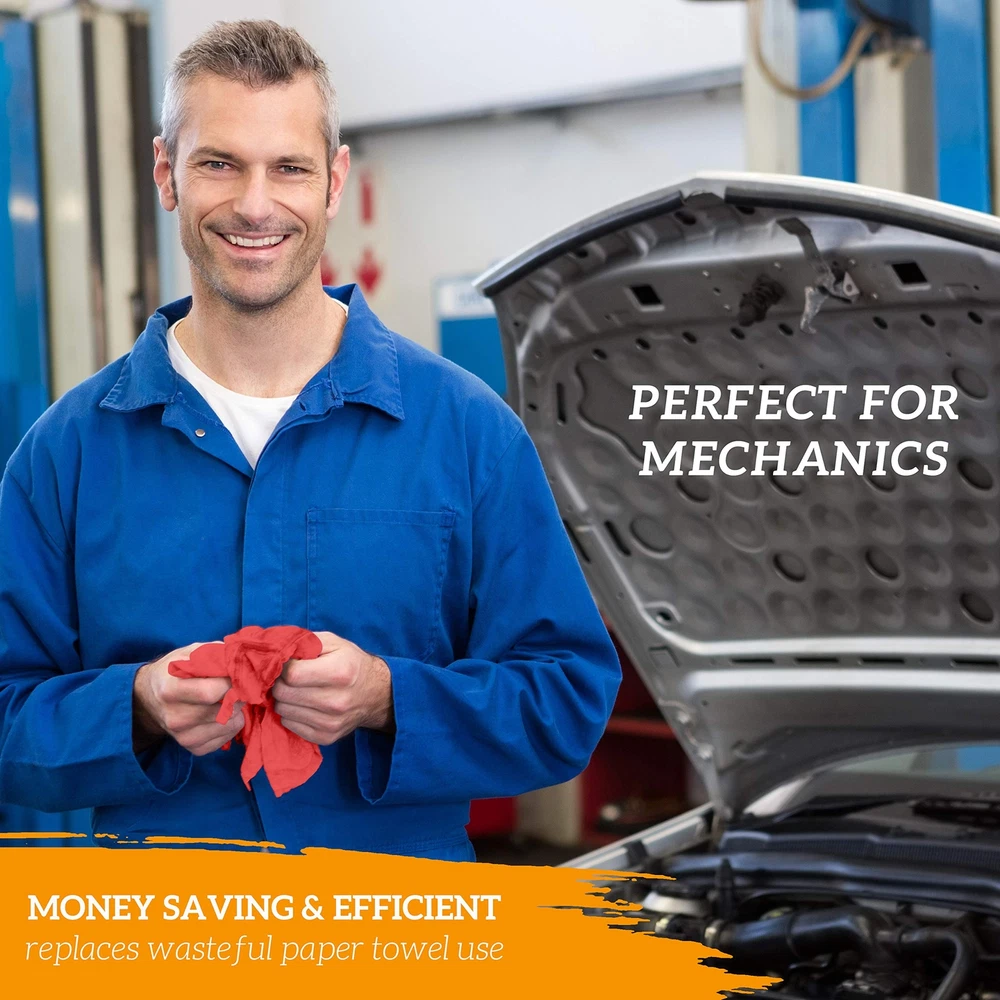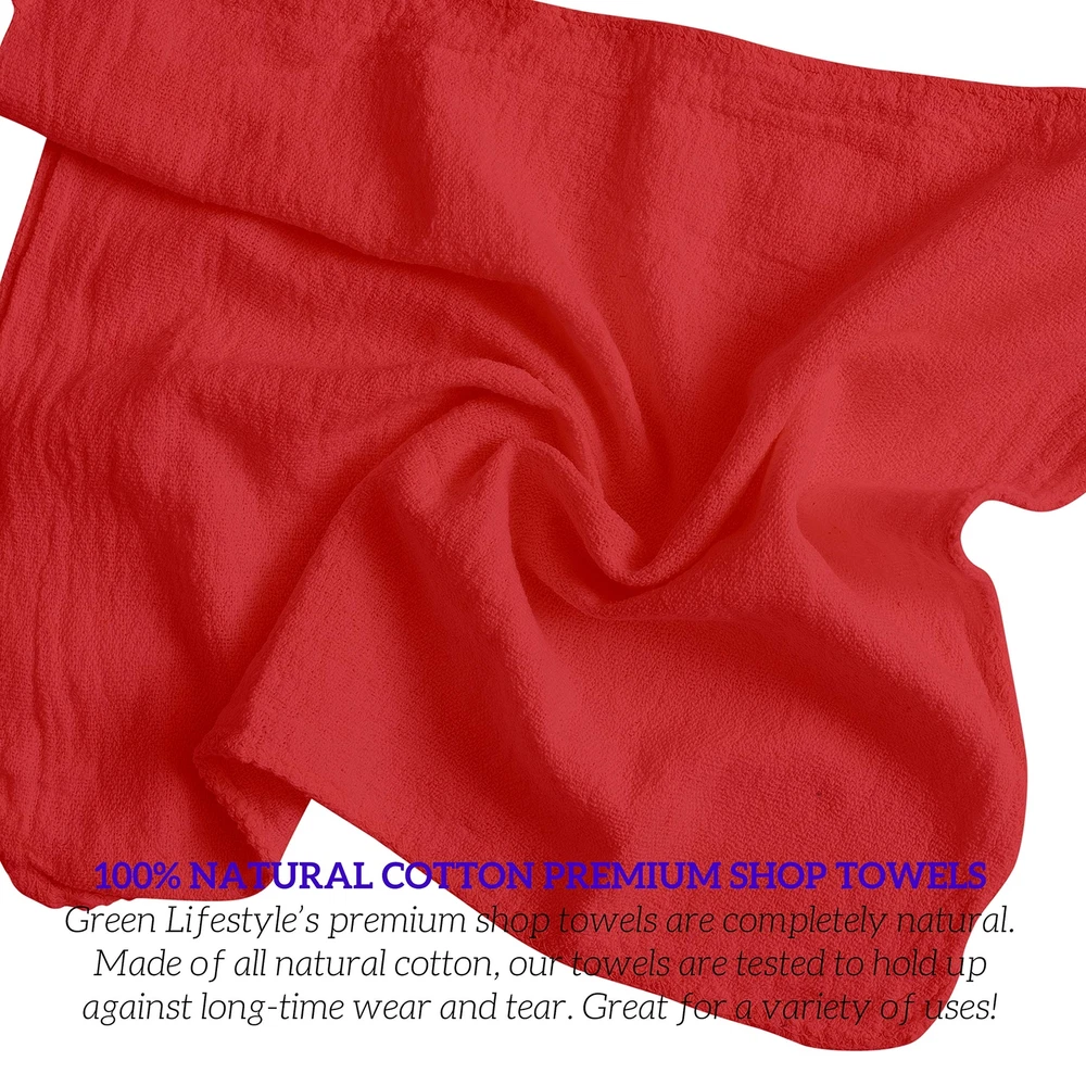 GREEN LIFESTYLE 150 Pack 12x14 Red Shop Towels 100% Cotton Super Absorbent an...