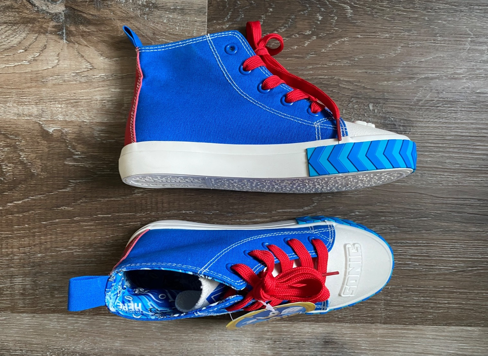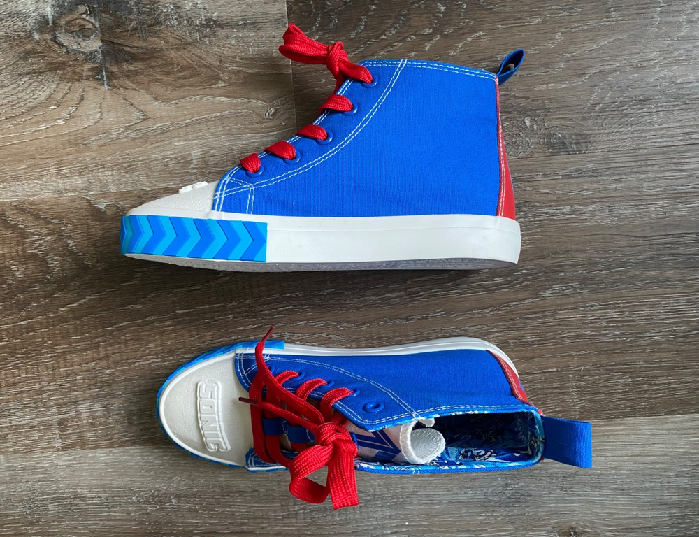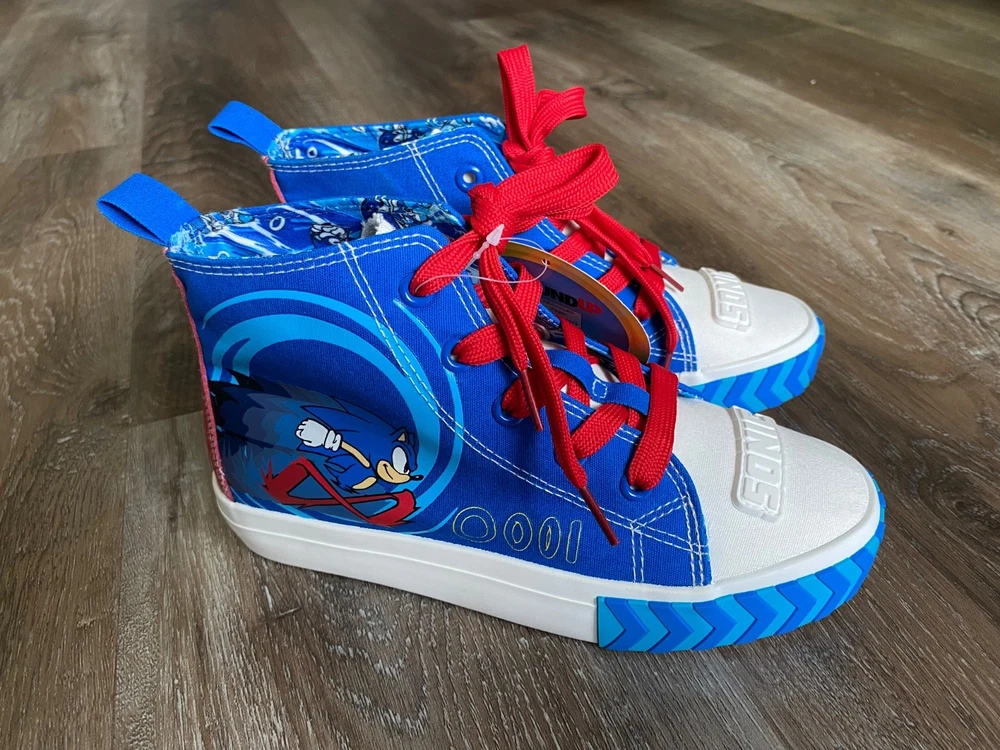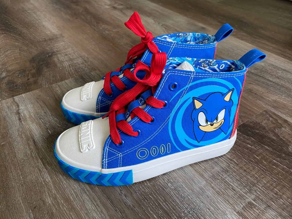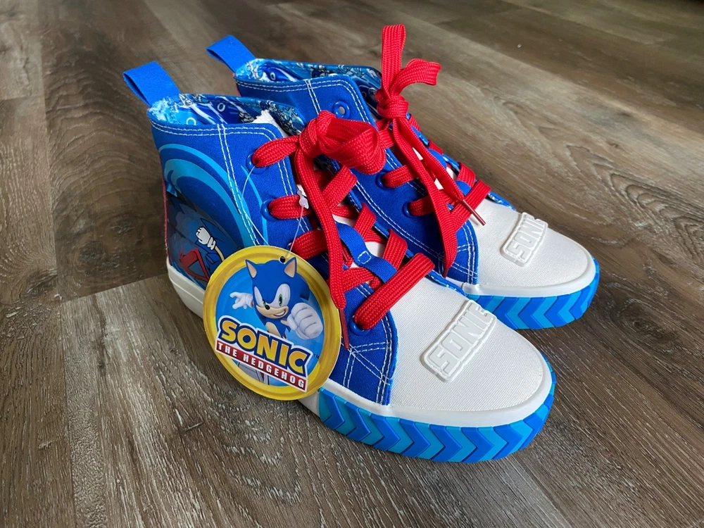 GROUND UP~New~Sonic The Hedgehog Boys High Top Sneakers Shoes~Size 3~NEW IN BOX *Style: ECSO3022KO *Size: Boy's size 3 *Color: Blue, light blue, white, red, yellow, black, gray, & beige *Closure: Lace up *Condition: excellent, new condition. Please review attached pictures of the item. DOES have the original box. *We have a smoke-free home.