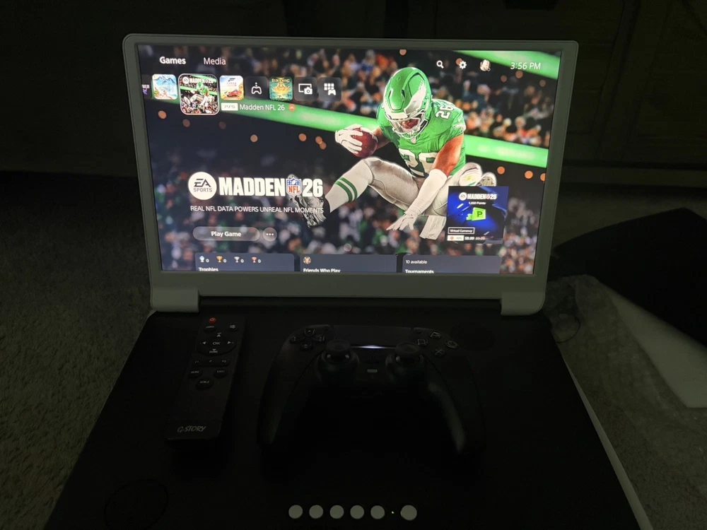G-STORY 15.6” 4K HDR Portable Monitor Case for PS5 (Model GS156U-PS5) Fully functional and tested. Excellent condition. Screen is clean with no dead pixels. All ports verified. This is the 4K IPS HDR version (not the 1080p model). Perfect all-in-one portable display solution for PS5. Ideal for travel, dorm rooms, hotels, or secondary gaming setup. ⸻ Key Features: • 15.6” 4K UHD (3840x2160) • HDR support • IPS panel • 60Hz refresh rate • Dual HDMI inputs • Integrated stereo speakers • Game mode / FPS mode • Remote included • Designed specifically to mount to original PS5 ⸻ Included: • G-STORY 4K Monitor Case • Power adapter • Remote • HDMI cable