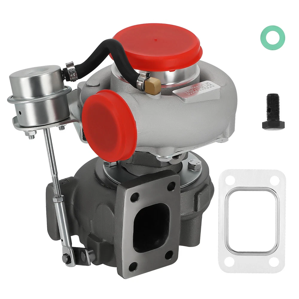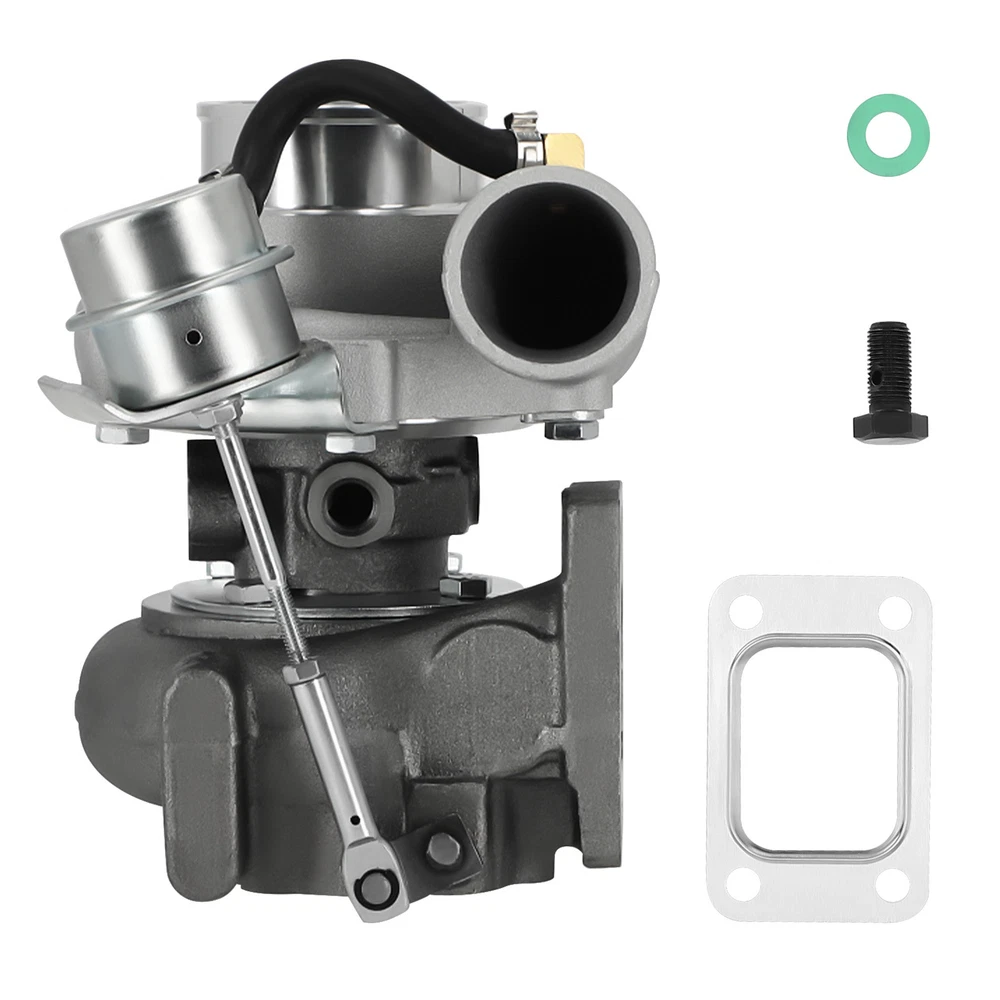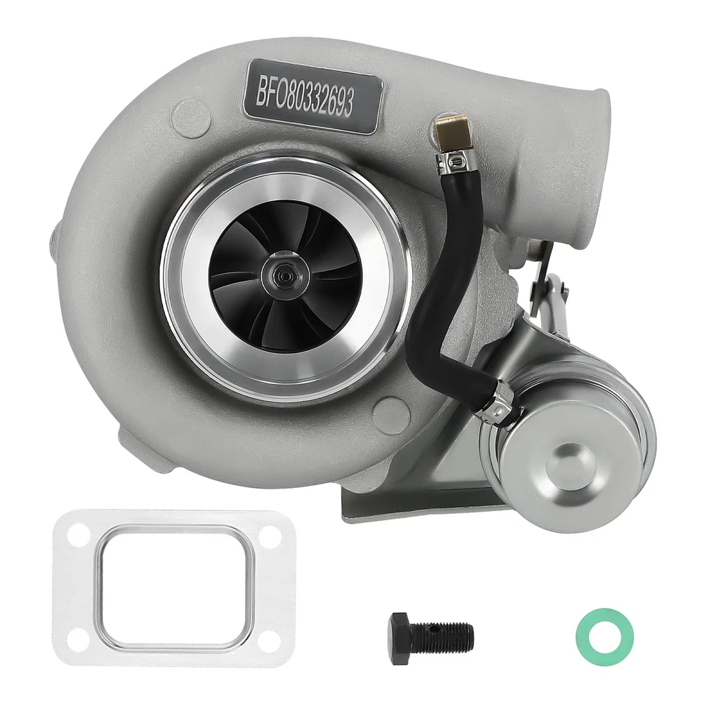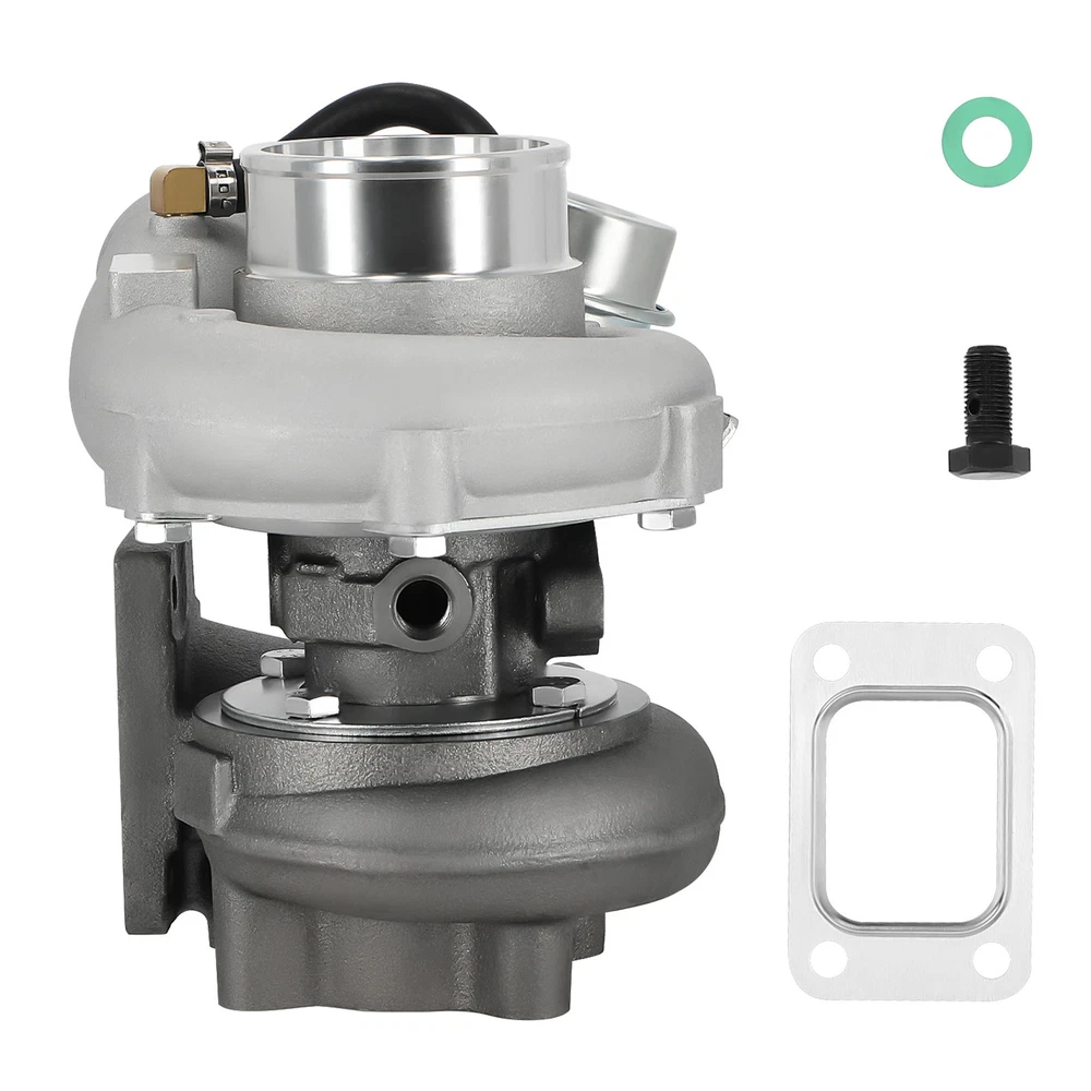 Application Universal for Turbo Manifold with T25 Flange(T28 Flange can be converted to T25 Flange, Adapter is needed). Perfect for all 1.5L-2.0L engine, for all 4 cylinder Horse Power: Boost Horse Power up to 350BHP Specification Exhaust Inlet (Turbo Manifold) Flange: Standard T25 Flange Exhaust Outlet Flange: 5-Bolt Turbine Trim: 76 Turbine A/R: 0.64 Turbine Inducer Diameter: 53.8mm Turbine Exducer Diameter: 47mm Compressor Trim: 48 Compressor A/R: 0.60 Compressor Inducer Diameter: 49.2mm Compressor Exducer Diameter: 71 mm Bearing Type: Wet Float Cooling Type: Water + Oil Wastegate: with Wastegate Oil Restrictor: Yes Oil Restrictor Size: inside diameter 2mm Oil Feed Size: 12mm Oil Inlet: M12*1.25 Oil Drain Size: 14mm Oil Outlet: M14 & 2*M8*1.25 Oil Drain Thread Pitch: 40mm Water Thread Size: M14*1.5 Horse Power: Boost Horse Power up to 350BHP Warranty: 1 Year for any manufacture defects Accessories: You will get exactly as shown as picture above Features Product Material 1. Turbine housing : Ductile iron QT450-10 shell with high-temperature resistance up to 700 degrees Celsius 2. Steel Turbine Wheel: Made from the special K418 alloy to achieve high oxidation resistance and stability under high temperatures up to 900 degrees Celsius 3. compressor wheel/blades: Cast aluminium with good gas tightness and corrosion resistance 4. Capable of Boosting Horse Power up to 350 BHP. =============================== *Product Features 1. Cost-effective turbo increase 20-40% power for your car 2. Rich experience in turbo production and own factory 3. High-Speed oil seal ring and Precision clearance 4. Built for durability and strength * Technology Advantage: 1. 100% balancing Test by TURBOTECHNICS VSR3 2. G3-min-Flow VNT Turbo testing 3. Advanced Actuator Tester/Programmer Notice * Replace, repair or reconnect air cleaner element per manufacturer's manual to avoid compressor wheel damage. * Make sure the oil drain line is lower than the turbo itself. * Gasoline car must install a water cooling device to avoid overheating. * Ensure exhaust outlet are well sealed by welding * The degree of modification of the universal turbo depends on your individual vehicle.Professional installation is highly recommended. * This Turbo is not vehicle specific. Please check the specifications and verify compatibility prior to placing your order. * Before installing the new turbocharger, the cause that led to the failure of the turbo must be analyzed and eliminated (e.g. insufficient oil supply, foreign bodies in the intake area, crankcase ventilation without function, etc.)! MXR04FXJT
