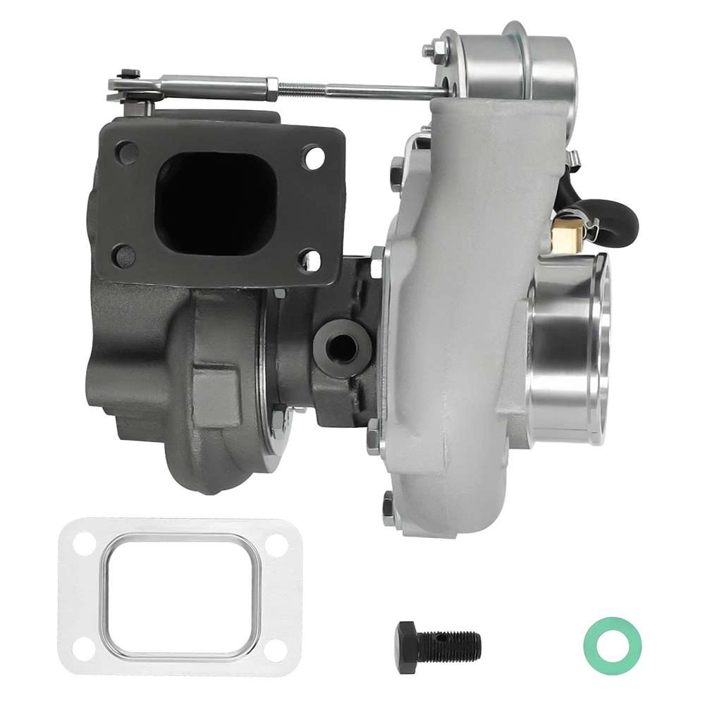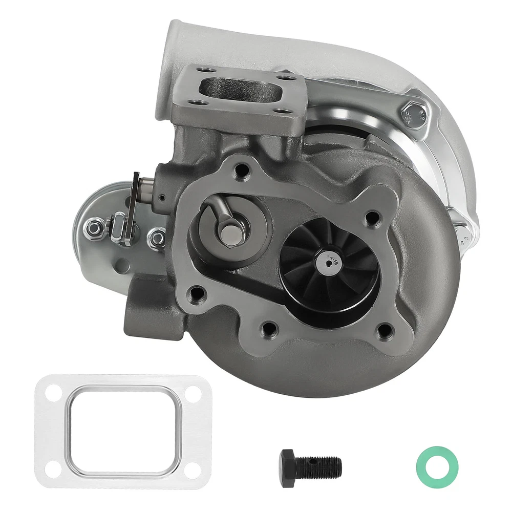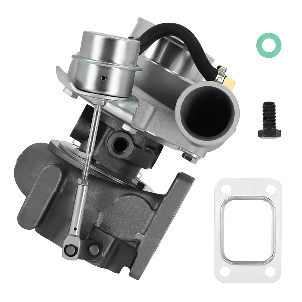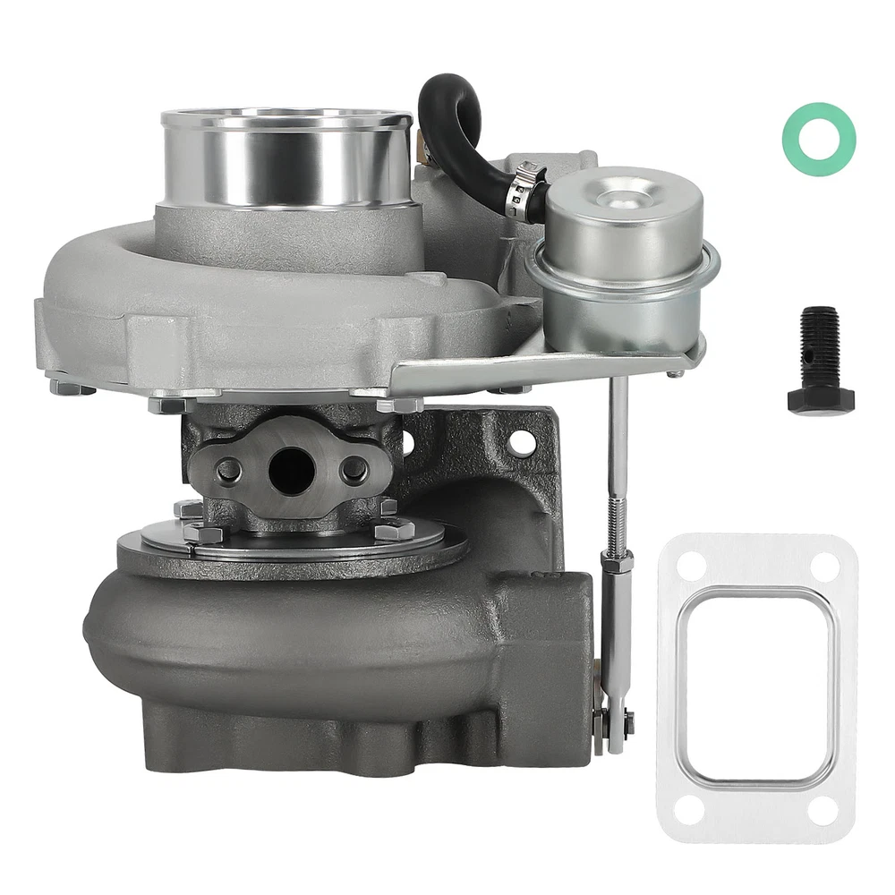 Application Universal for Turbo Manifold with T25 Flange(T28 Flange can be converted to T25 Flange, Adapter is needed). Perfect for all 1.5L-2.0L engine, for all 4 cylinder Horse Power: Boost Horse Power up to 350BHP Specification Exhaust Inlet (Turbo Manifold) Flange: Standard T25 Flange Exhaust Outlet Flange: 5-Bolt Turbine Trim: 76 Turbine A/R: 0.64 Turbine Inducer Diameter: 53.8mm Turbine Exducer Diameter: 47mm Compressor Trim: 48 Compressor A/R: 0.60 Compressor Inducer Diameter: 49.2mm Compressor Exducer Diameter: 71 mm Bearing Type: Wet Float Cooling Type: Water + Oil Wastegate: with Wastegate Oil Restrictor: Yes Oil Restrictor Size: inside diameter 2mm Oil Feed Size: 12mm Oil Inlet: M12*1.25 Oil Drain Size: 14mm Oil Outlet: M14 & 2*M8*1.25 Oil Drain Thread Pitch: 40mm Water Thread Size: M14*1.5 Horse Power: Boost Horse Power up to 350BHP Warranty: 1 Year for any manufacture defects Accessories: You will get exactly as shown as picture above Features Product Material 1. Turbine housing : Ductile iron QT450-10 shell with high-temperature resistance up to 700 degrees Celsius 2. Steel Turbine Wheel: Made from the special K418 alloy to achieve high oxidation resistance and stability under high temperatures up to 900 degrees Celsius 3. compressor wheel/blades: Cast aluminium with good gas tightness and corrosion resistance 4. Capable of Boosting Horse Power up to 350 BHP. =============================== *Product Features 1. Cost-effective turbo increase 20-40% power for your car 2. Rich experience in turbo production and own factory 3. High-Speed oil seal ring and Precision clearance 4. Built for durability and strength * Technology Advantage: 1. 100% balancing Test by TURBOTECHNICS VSR3 2. G3-min-Flow VNT Turbo testing 3. Advanced Actuator Tester/Programmer Notice * Replace, repair or reconnect air cleaner element per manufacturer's manual to avoid compressor wheel damage. * Make sure the oil drain line is lower than the turbo itself. * Gasoline car must install a water cooling device to avoid overheating. * Ensure exhaust outlet are well sealed by welding * The degree of modification of the universal turbo depends on your individual vehicle.Professional installation is highly recommended. * This Turbo is not vehicle specific. Please check the specifications and verify compatibility prior to placing your order. * Before installing the new turbocharger, the cause that led to the failure of the turbo must be analyzed and eliminated (e.g. insufficient oil supply, foreign bodies in the intake area, crankcase ventilation without function, etc.)! MXR04FXJT