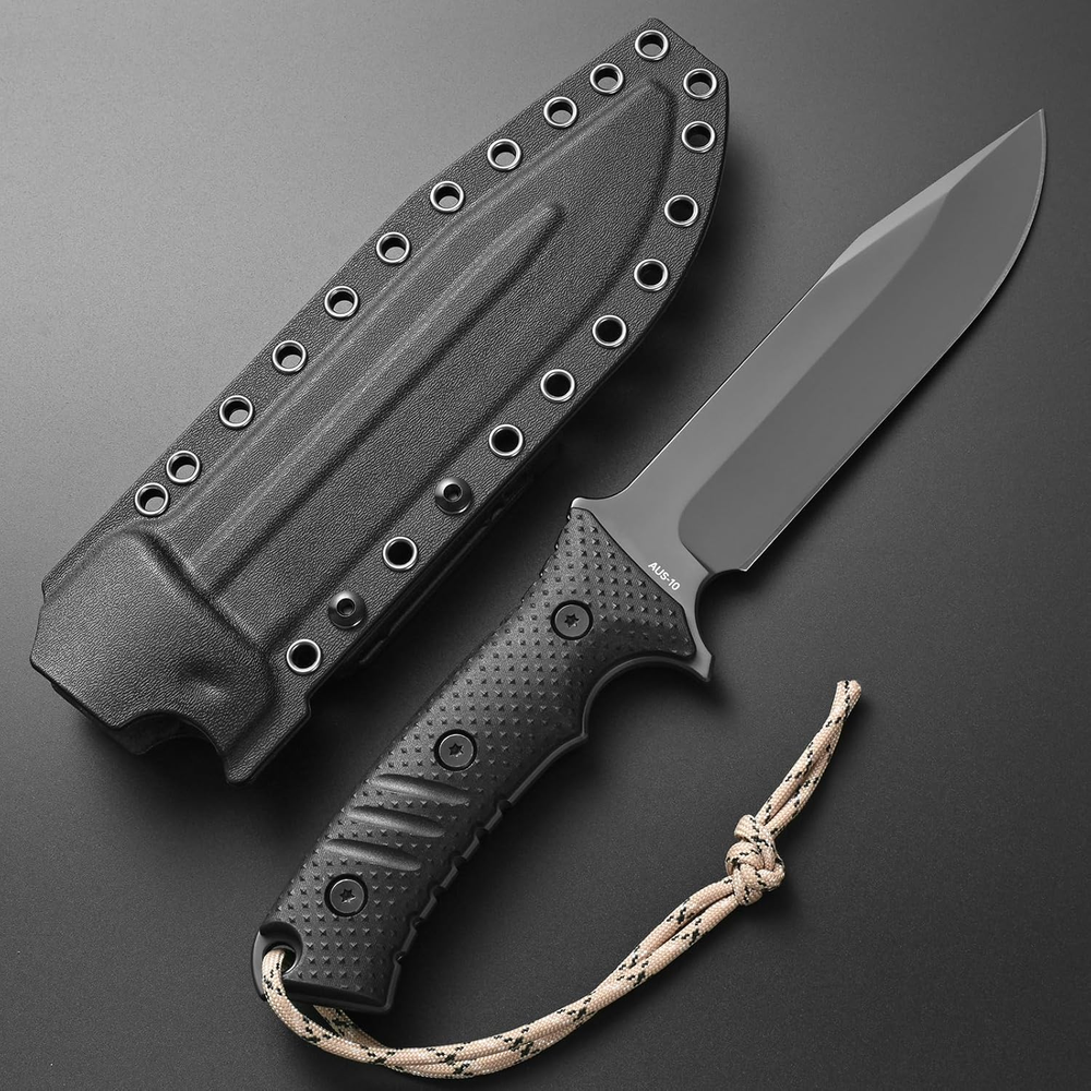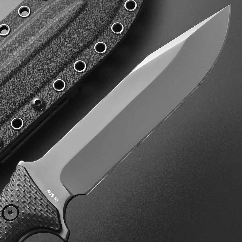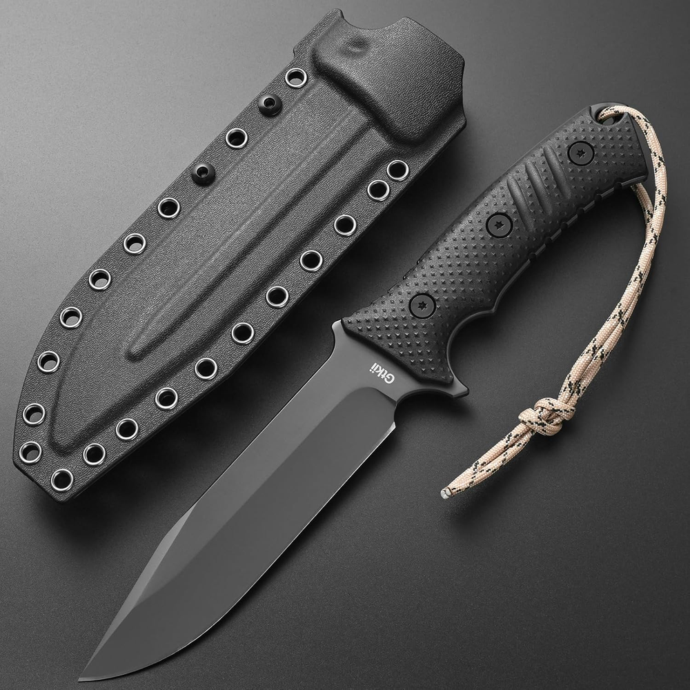 Knife Dimensions: 12.9 inch (33 cm) overall length , Blade length: 6.4 inch(16.3cm), Handle length: 6.5 inch(16.7cm) ,Blade thickness: 6mm, Blade width: 3.8cm(1.5 inch),Handle Thickness: 1.8cm, Knife Net weight :376g(13.2 oz), Weight with Kydex sheath: 533g ( 18.8 oz ) EXQUISITE Nylon Fiberglass HANDLE: The better ergonomic High Hardness Nylon Fiberglass handle provide a durable, security grip and increase concealability and multi-environment functionality. This new type material handle is better than G10 handle , it's temperature resistant, has good abrasion resistance, is anti-slip, moisture-proof, does not expand or contract due to normal temperature and moisture exposure, and is exceptionally rugged. Premium AUS-10 Steel Blade: Blade made of AUS-10 stainless steel,hardness 59-61HRC,using stone wash and Titanium coating process ,blade finish is pretty smooth and even,sturdy build cool beefy blade , provides razor sharp for ultimate precision cutting performance and excellent edge retention. Durable Kydex Sheath: Safe high-strength lightweight ,high temperature resistant and corrosion resistant imported kydex material sheath for easy portability and everyday carry. The sheath is tight, with no rattle, but still allows quick deployment.It has an adjustable clip to fit the width of your belt for a good snug grip. EDC Camping Fixed Knife:The highest quality material keep the knife a long service life. Gtkii knife professional outdoor camp knives is fully qualified,excellent choice for EDC tools& Hunting, Fishing, Camping, Hiking, gardening,electrician tool, field living , Emergency Rescue, Adventure,Collection and all Outdoors &Sports activities, it is a nice and cool gift for man,husband, boyfriend, father, brothers, good friends. Product Description GKTII is our brand name ,which means great knives. we will produce and provide a serises of good quality cool style fixed knives , folding knives and claw knives to the knife market, at the same time all our knives will be with a reasonable ,affordable offer, you can get an attractive knife from us without breaking your bank account. premium AUS-10 stainless steel Full Tang Straight knife with thick handle is robust built, more stronger and more powerful, qualified for almost any task from home using ,Kitchen, gardening , farm, ranches, electrician tool, tactical to outdoor Jungle, camping, hunting, hiking, fishing, survival, adventure , bushcraft,field living challenge . Better ergonomic High Hardness Nylon Fiberglass handle provide a durable, security grip and nice whole knife balance , effortless with more confidence when put it in many kinds of heavy using. a thick full tang make it more powerful. it will definitely be qualified for outdoor living, jungle hunting, wood choping, camp works. Classical and cool style beefy blade is solid build up and razor sharp, cool looking and Powerful!! it will definitely be a cool thing to show off among your friends, if you give it to them as an amazing gift , they will be very happy and excited to take it and thankful from their deep heart!