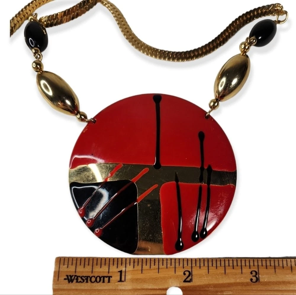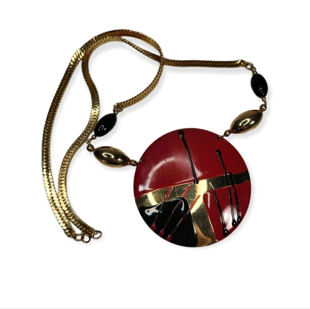 GUC 1980's Modern Art Medallion Necklace APPROX 24"