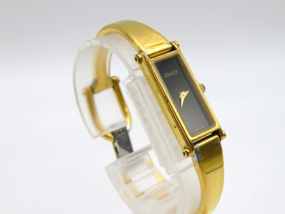 [ Exc+5 w/Box ] GUCCI 9000L Black Dial 11P Diamond Men's Watch Used Working