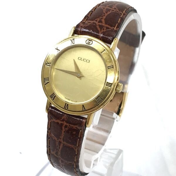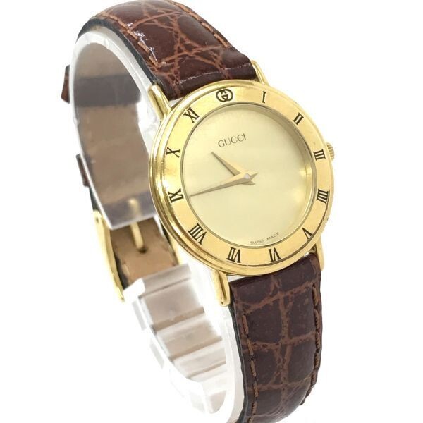 [Exc+3] GUCCI 3000.2.L Gold Brown Dial Quartz Ladies Watch Used Working