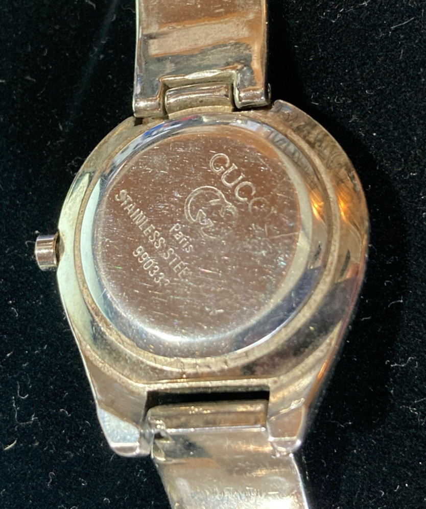 Elevate your style with this luxurious Gucci 6700L wristwatch. Designed for women, this round watch features a silver stainless steel case and band with a beautiful blue analog dial. The quartz movement ensures accurate timekeeping, while the 17.5cm band width provides a comfortable fit. This watch is perfect for any occasion, from casual outings to formal events. With its sleek design and premium quality, it is a must-have accessory for any fashion-forward individual. Add this Gucci 6700L watch to your collection today and experience the ultimate in luxury and sophistication.