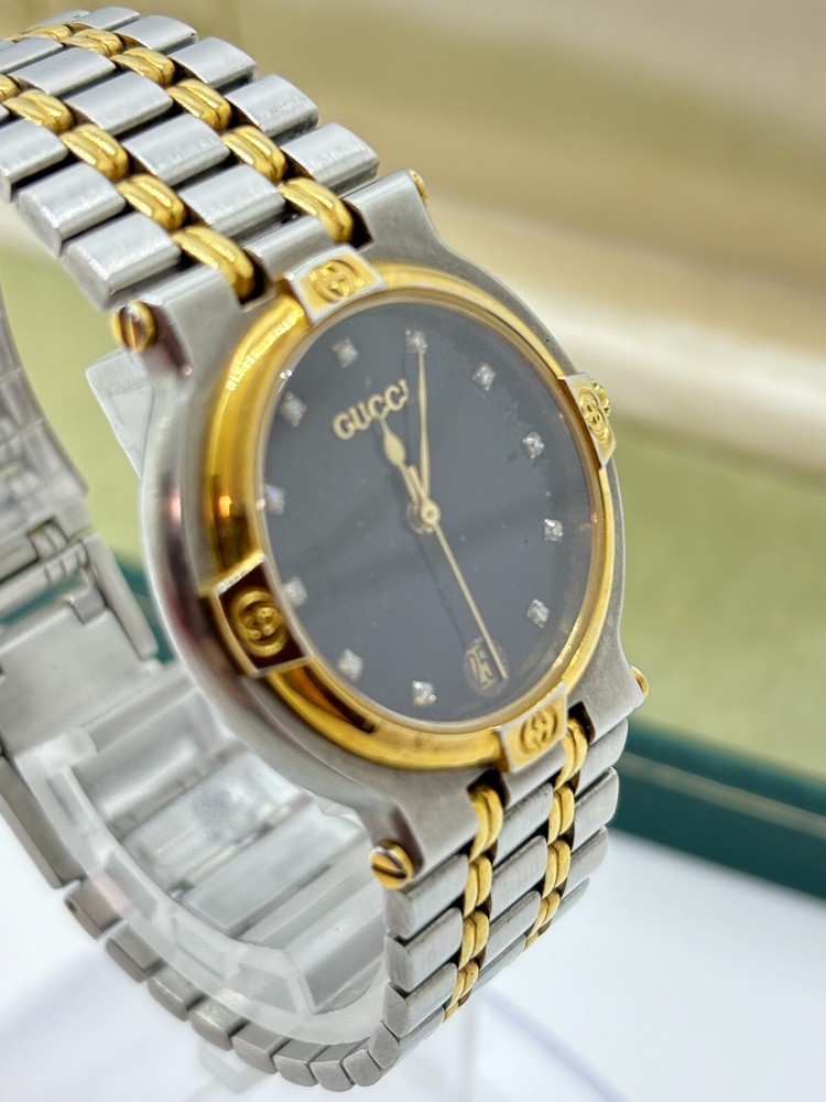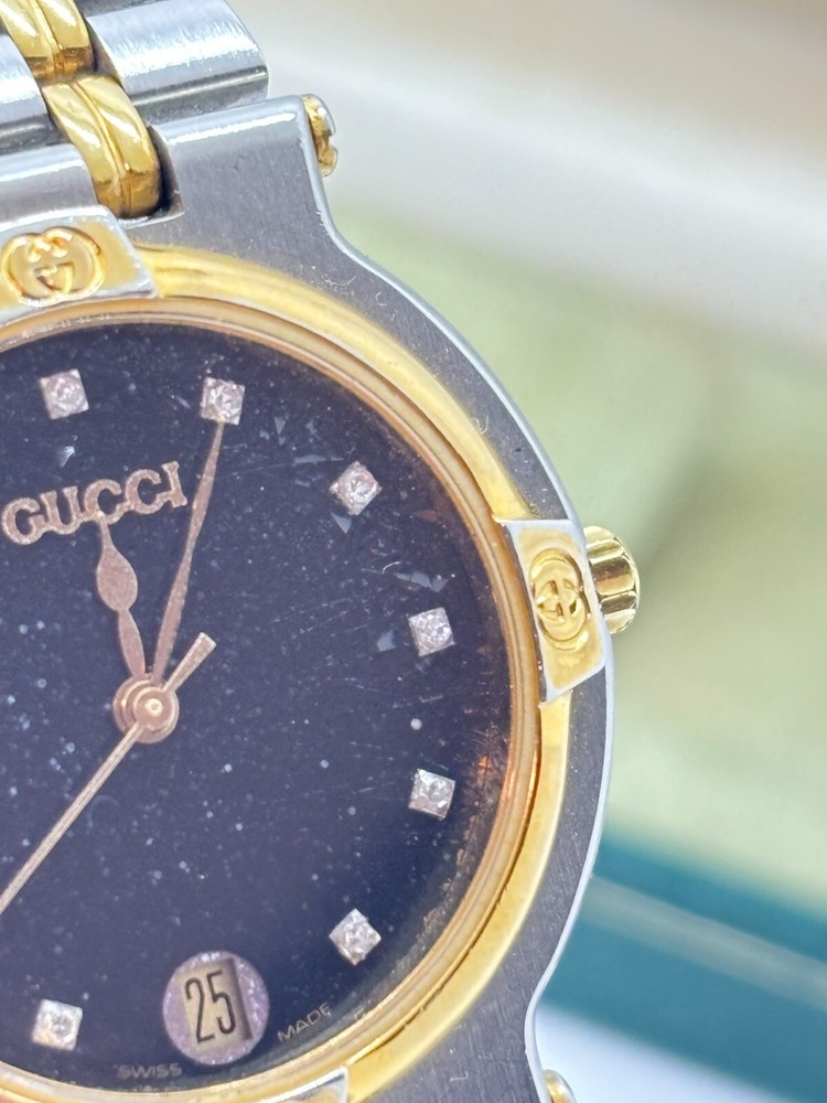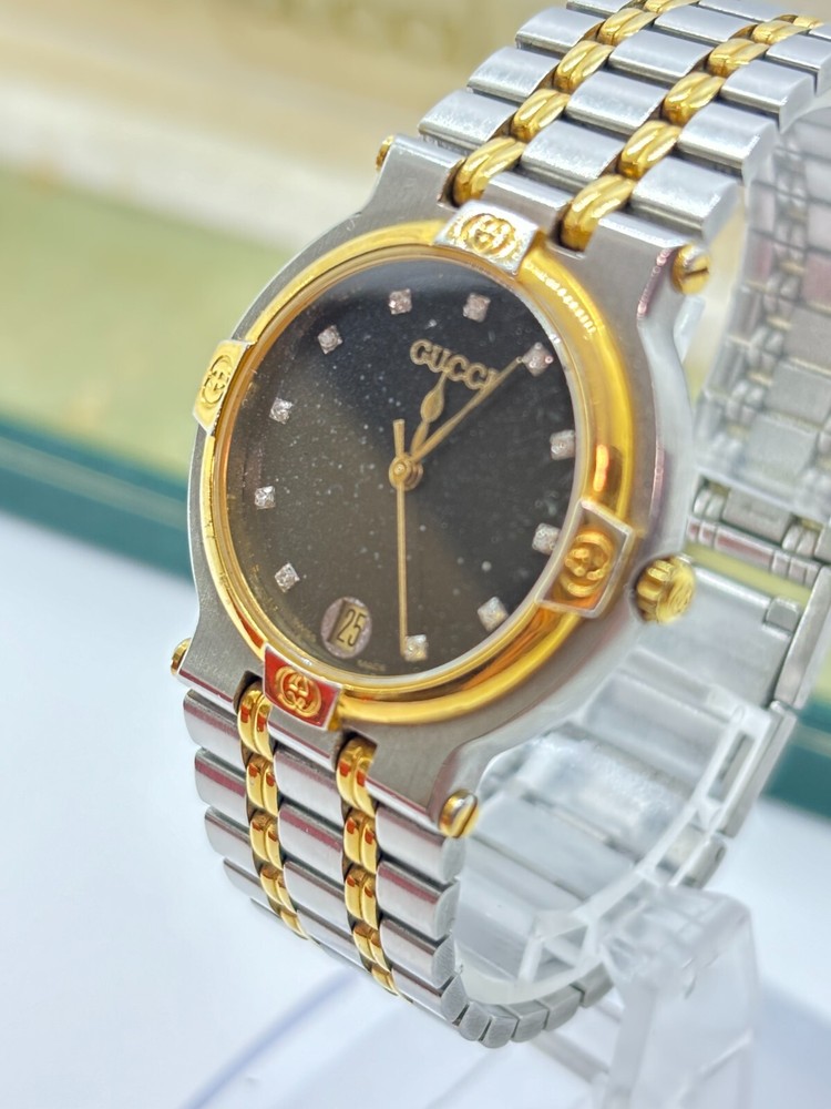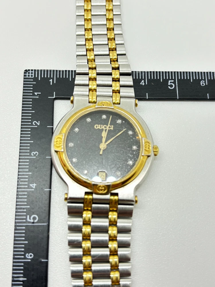 $ 73.33Gucci 9000L Two Tone Steel Gold Dial Quartz Womens Watch Near Mint