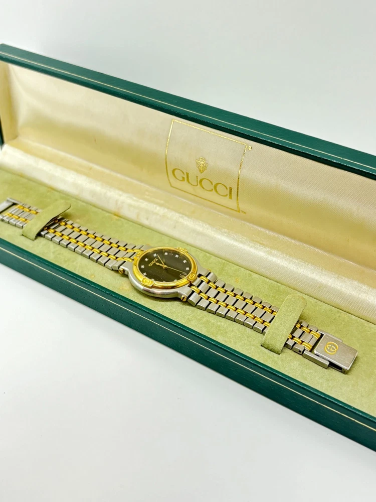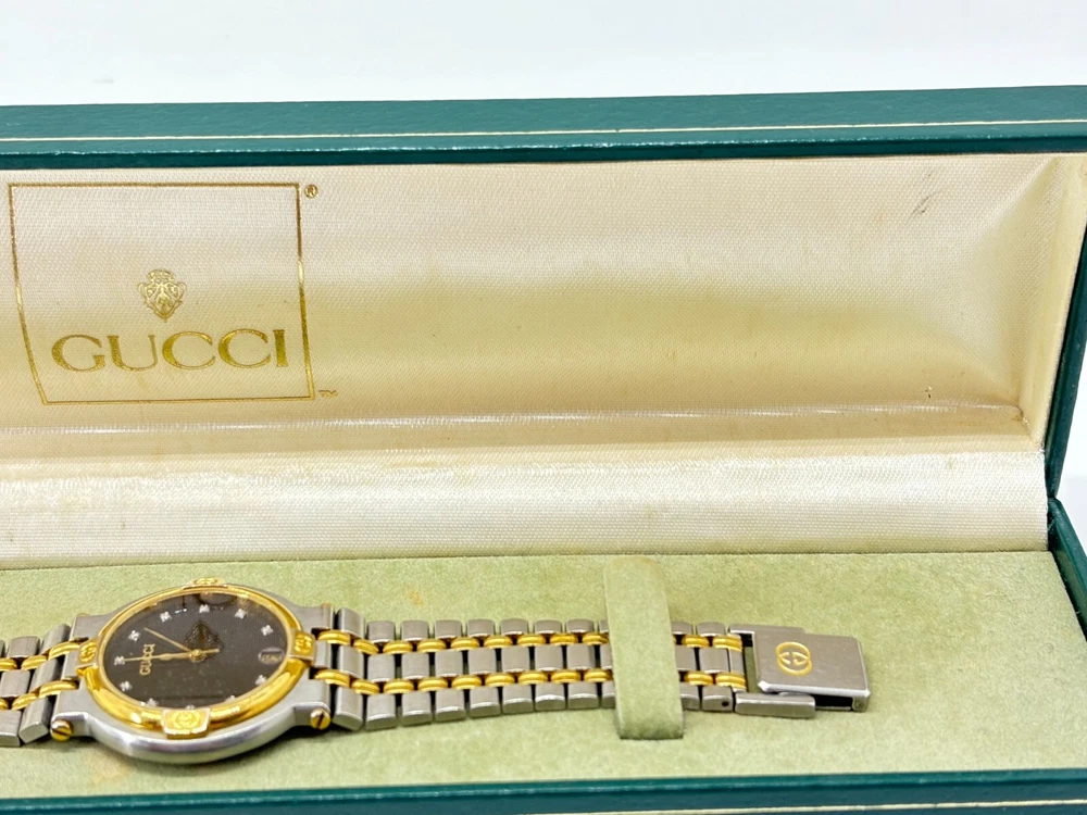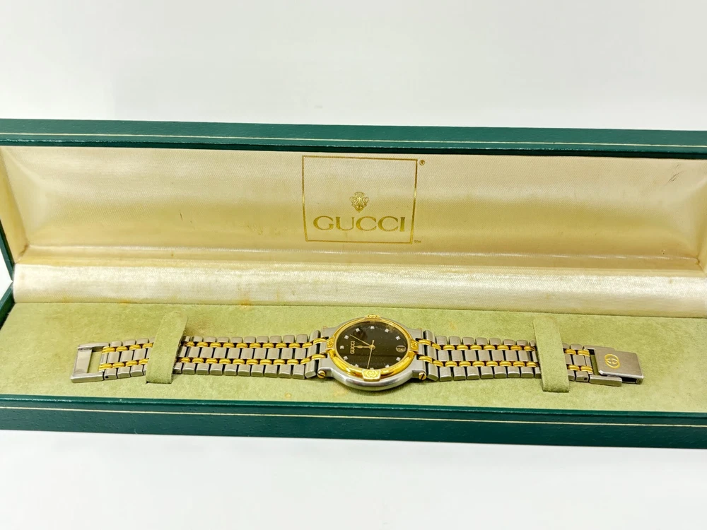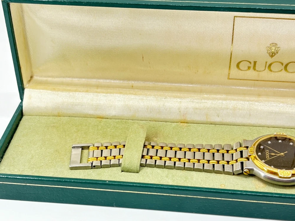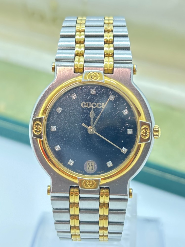 $ 73.33Gucci 9000L Two Tone Steel Gold Dial Quartz Womens Watch Near Mint