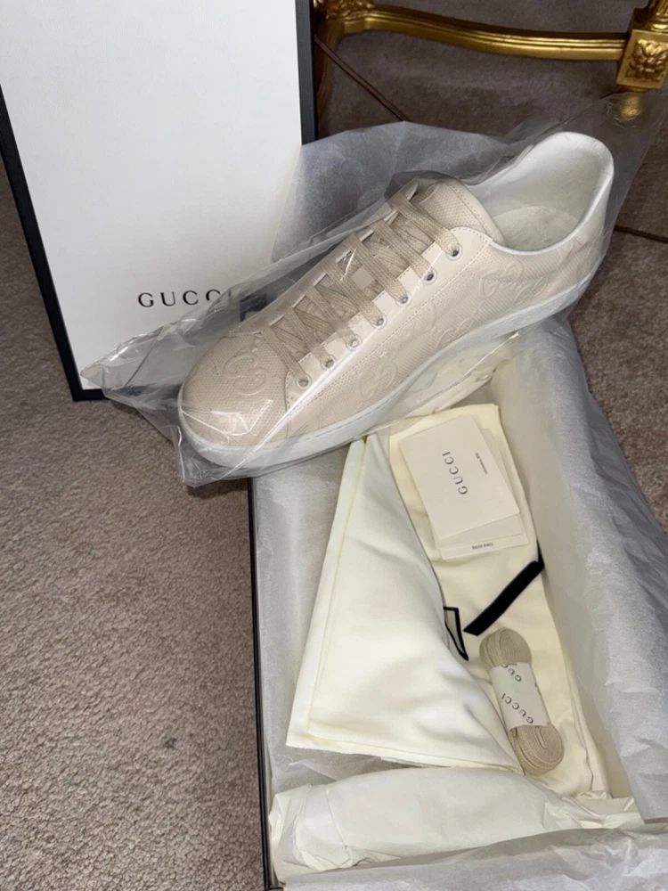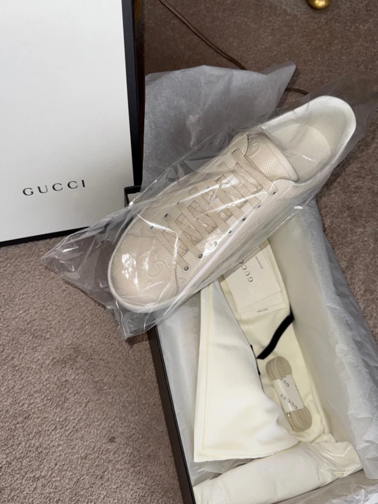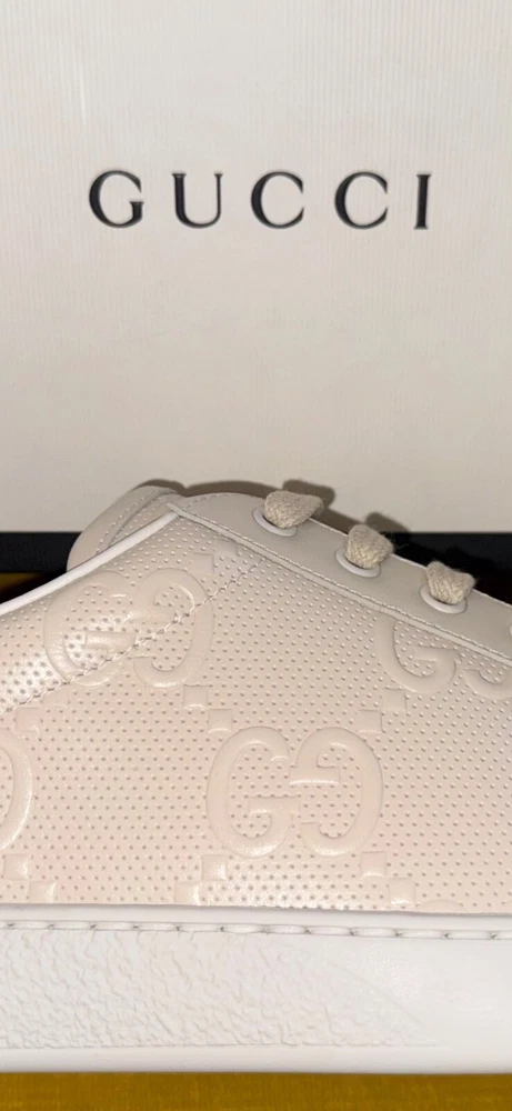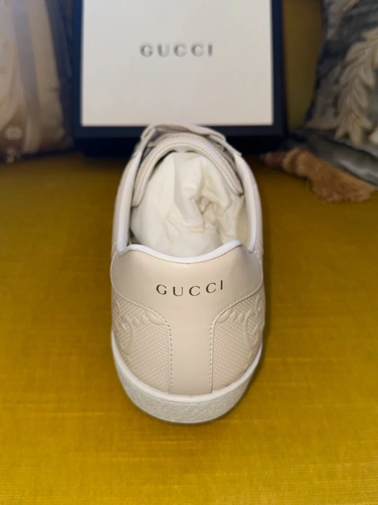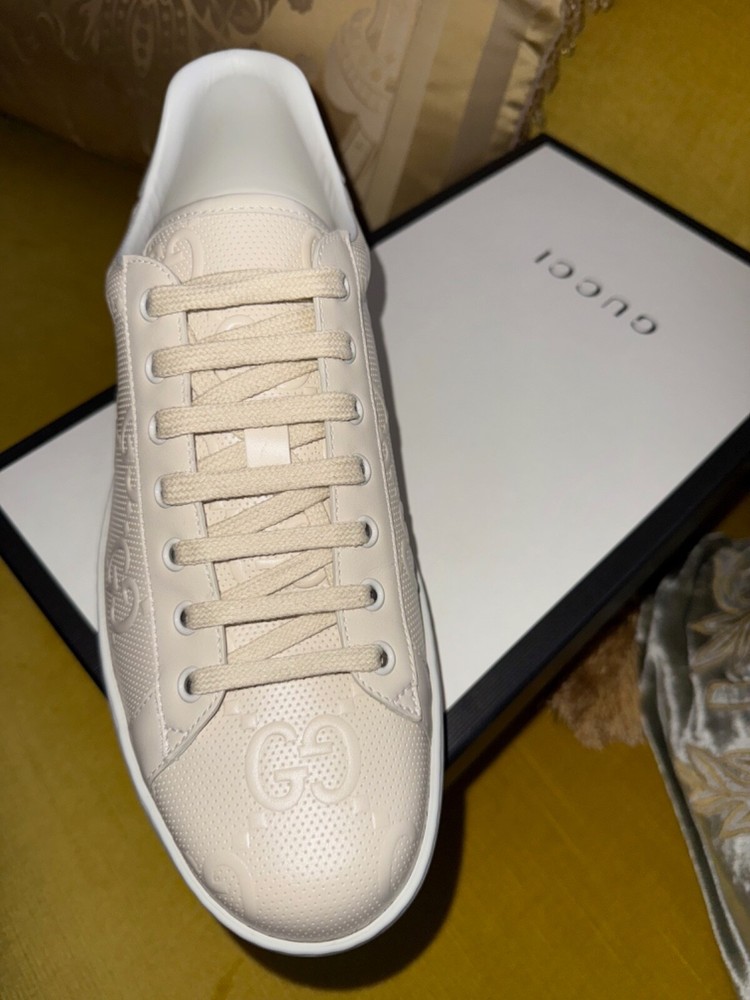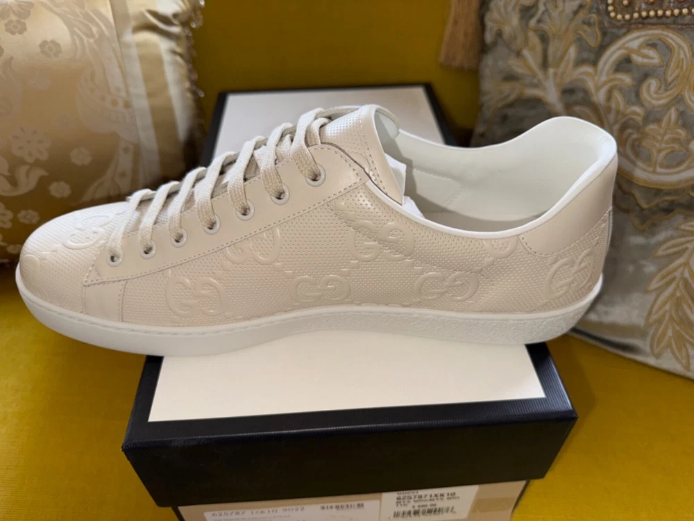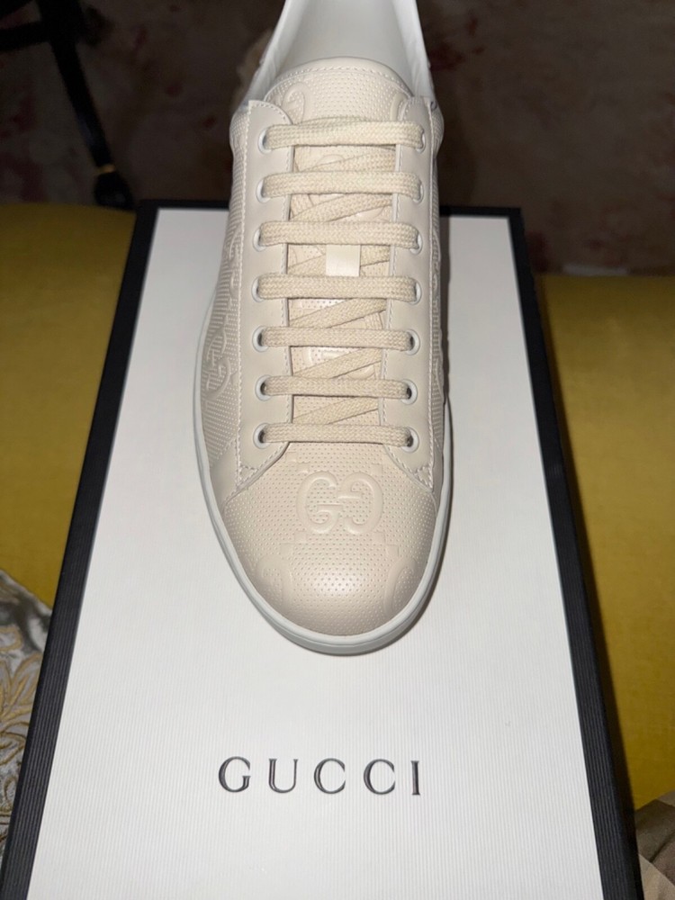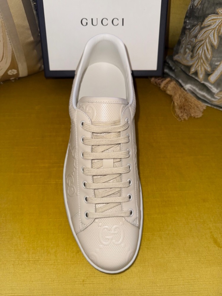 GUCCI Ace Monogram Sneakers Shoes * Tan Beige * Size US 12 / 45 * NEW * $895 * SOLD OUT * VERY RARE * Size US 12 / Euro 45 * Color: Tan / Beige * NEW w/ BOX and all Rapping's * Made In Italy * 100% Authentic