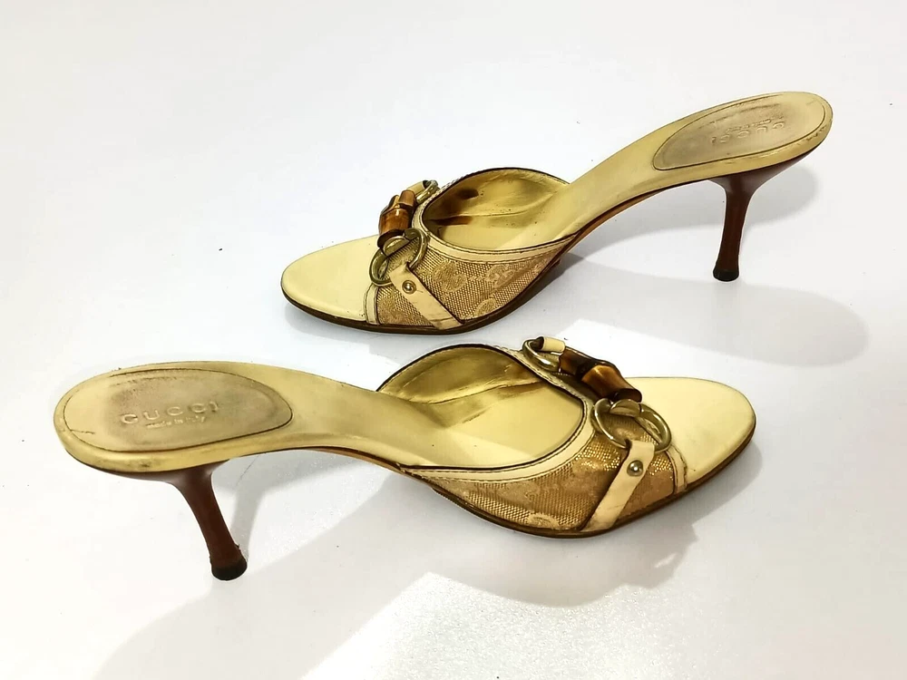GUCCI BAMBOO HORSEBIT GG CANVAS SLIDES MULES SIZE, EU38, US7.5, IS IN USED CONDITION, > INNER SIDE VISIBLE STAIN AND DUTY, SIGN OF USE, > DOWN THE SOLE USED MARKS AND A RUBBER GRIP IS AFFIXED, > TOP OF THE HEELS ARE DUSTY AND LITTLE RUBBED SHOWING IN PICTURE NUMBER 6 & 11, > BOTTOM SIDE THE ONE HEEL IS LITTLE RUBB SHOWING IN PICTURE NUMBER 17, > OVERALL CONDITION IS IN USED, > REQUESTED TO SEE ALL PICTURES VERY CAREFULLY BEFORE THE BUYING CLEARLY CONDITION IS SHOWING IN ALL PICTURES, > IF HAVE ANY QUESTION RELATED ITEM THEN DIRECTLY MESSAGE ME IN INBOX, > RETURN IS NOT ACCEPTED, > DUST BAG AND BOX ARE NOT AVAILABLE, > SHIPPED WITH DHL INTERNATIONAL EXPRESS FASTER SERVICE