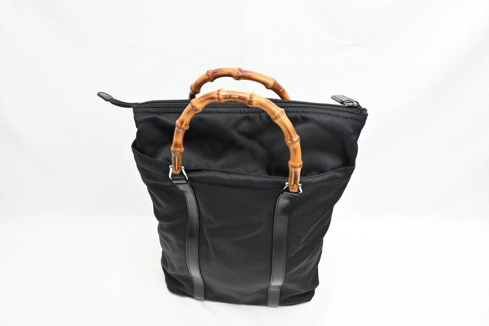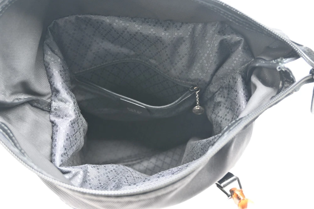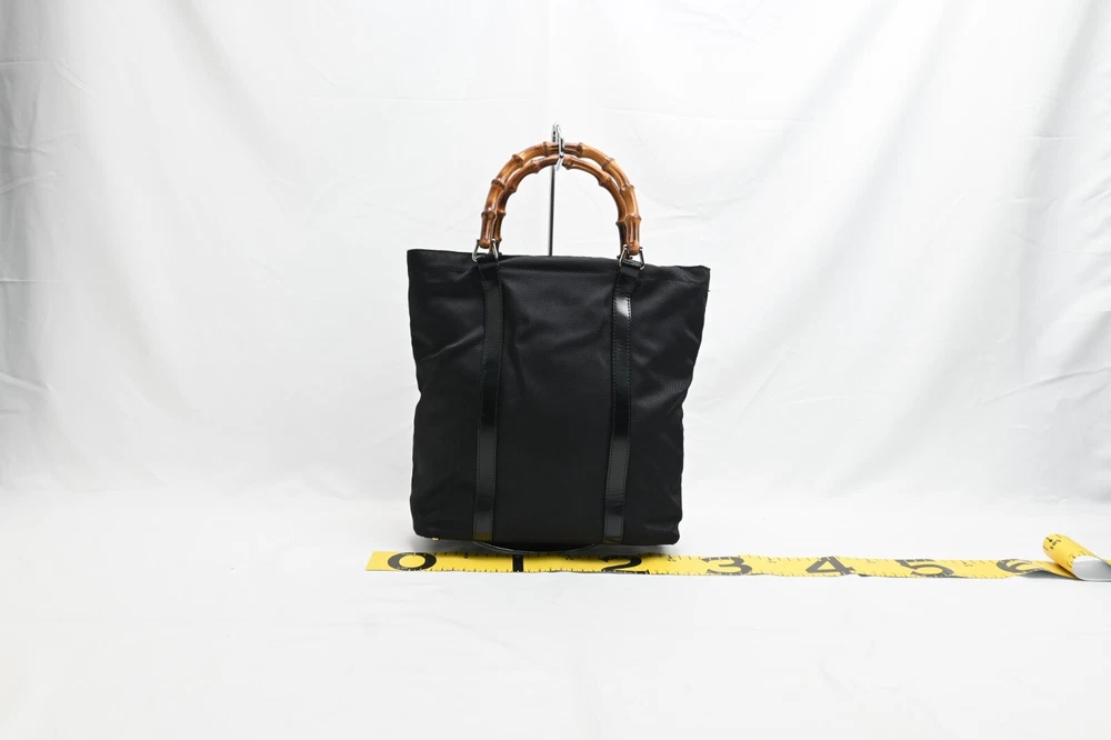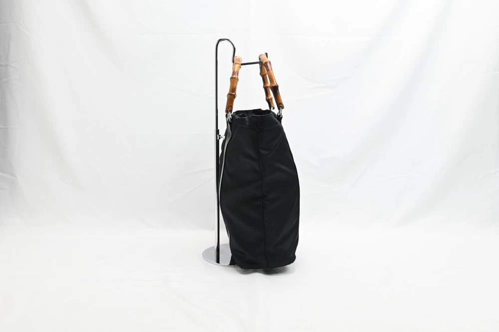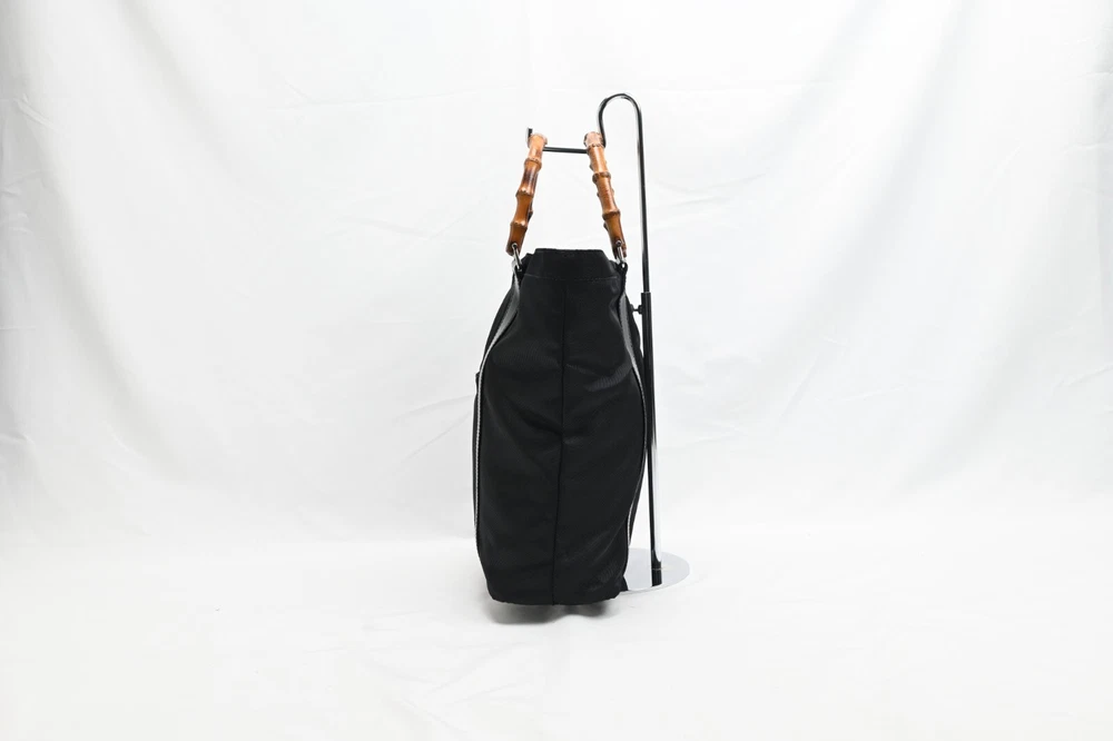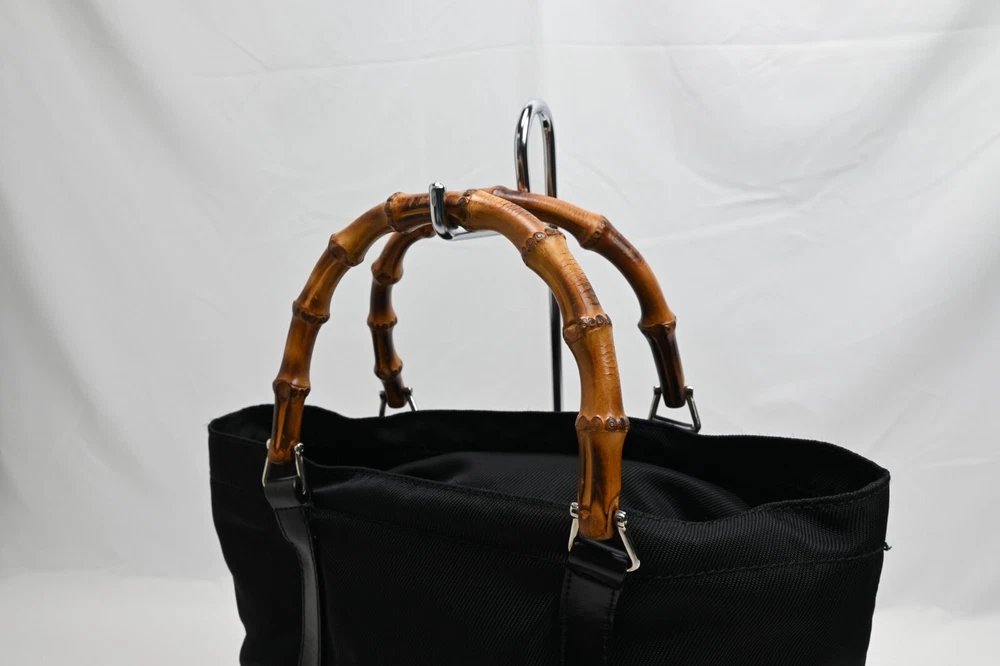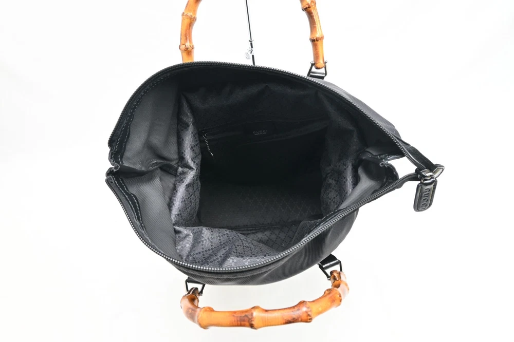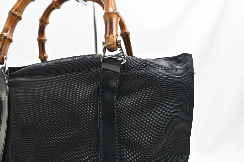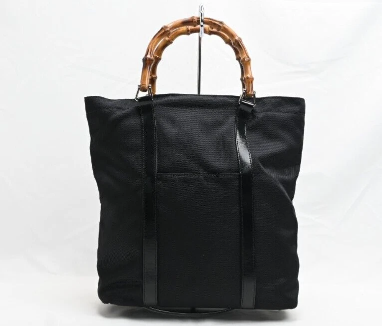 GUCCI Bamboo Tote Bag handbag Black Silver Hardware canvas/leather