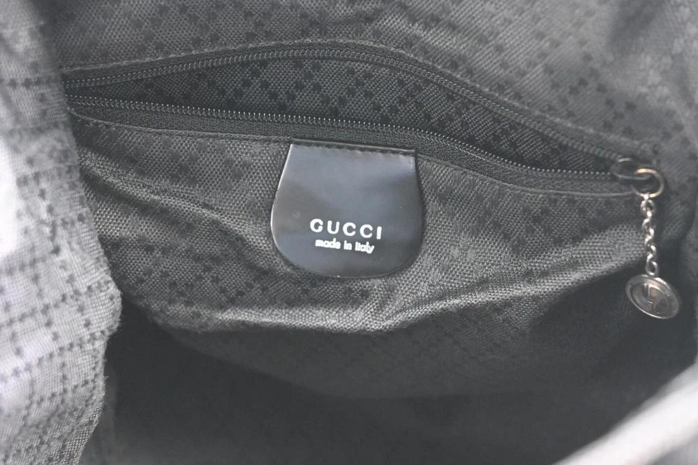 Type: Tote Bag Handle/Strap Color: Black Lining Material: Leather Brand: Gucci Style: Tote Bag Exterior Material: canvas Bag Width: 12 in Department: Women Exterior Color: Black Bag Height: 11 in Bag Depth: 3.6in Country of Manufacture: Italy Artist: See description