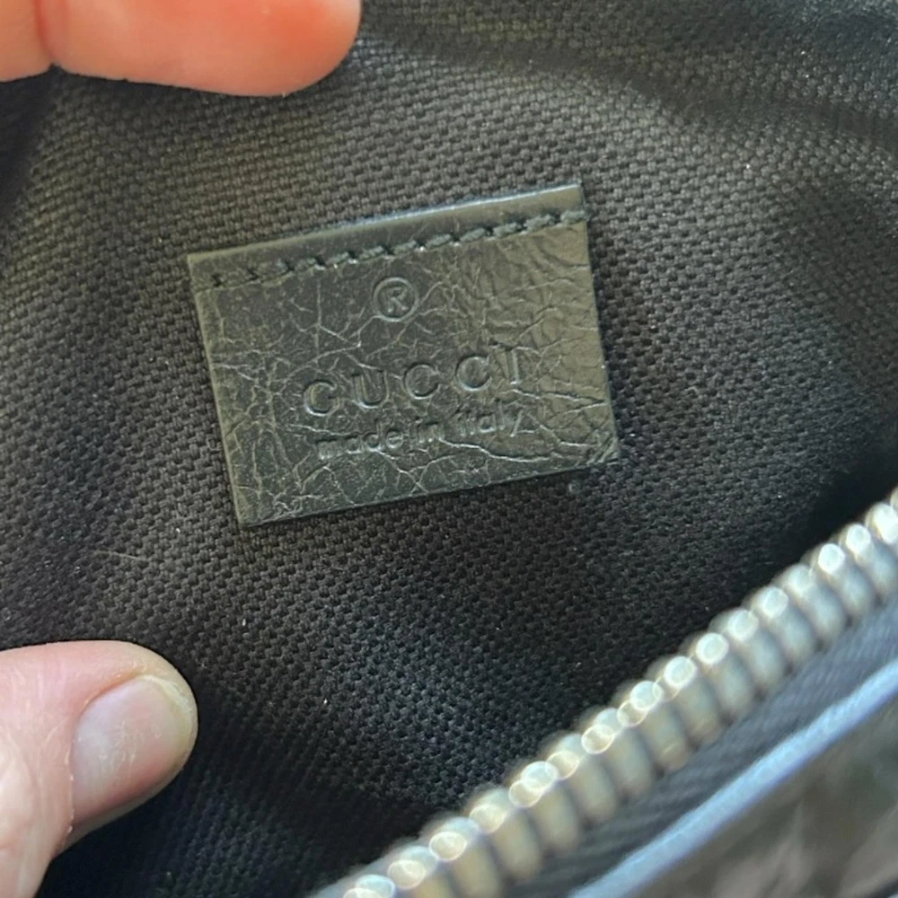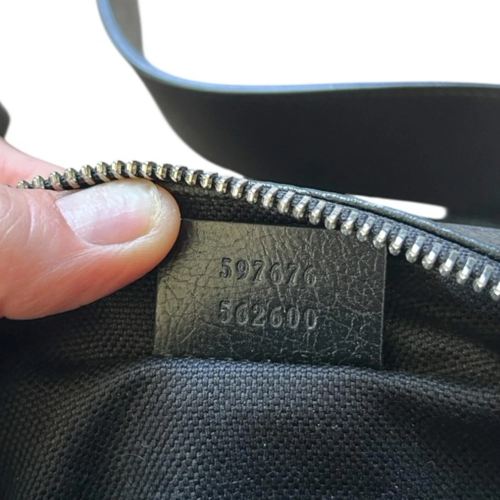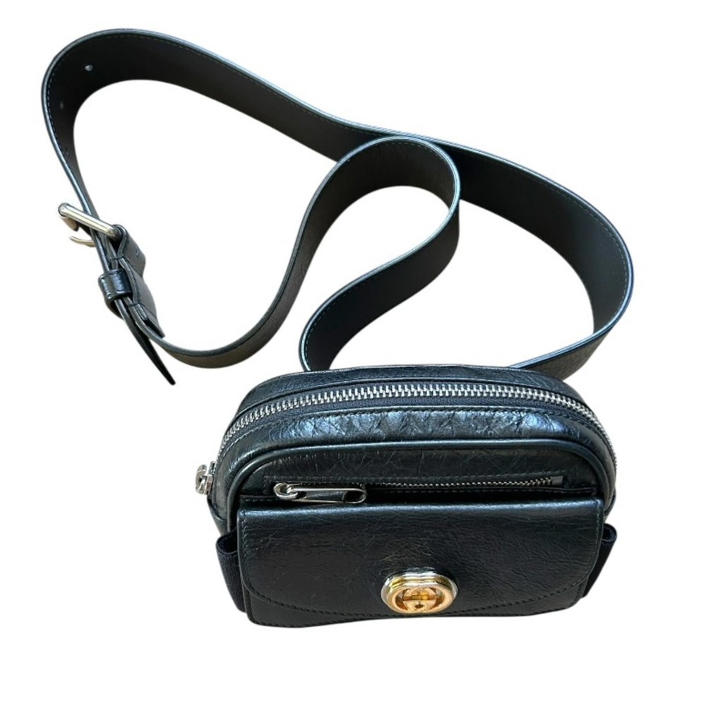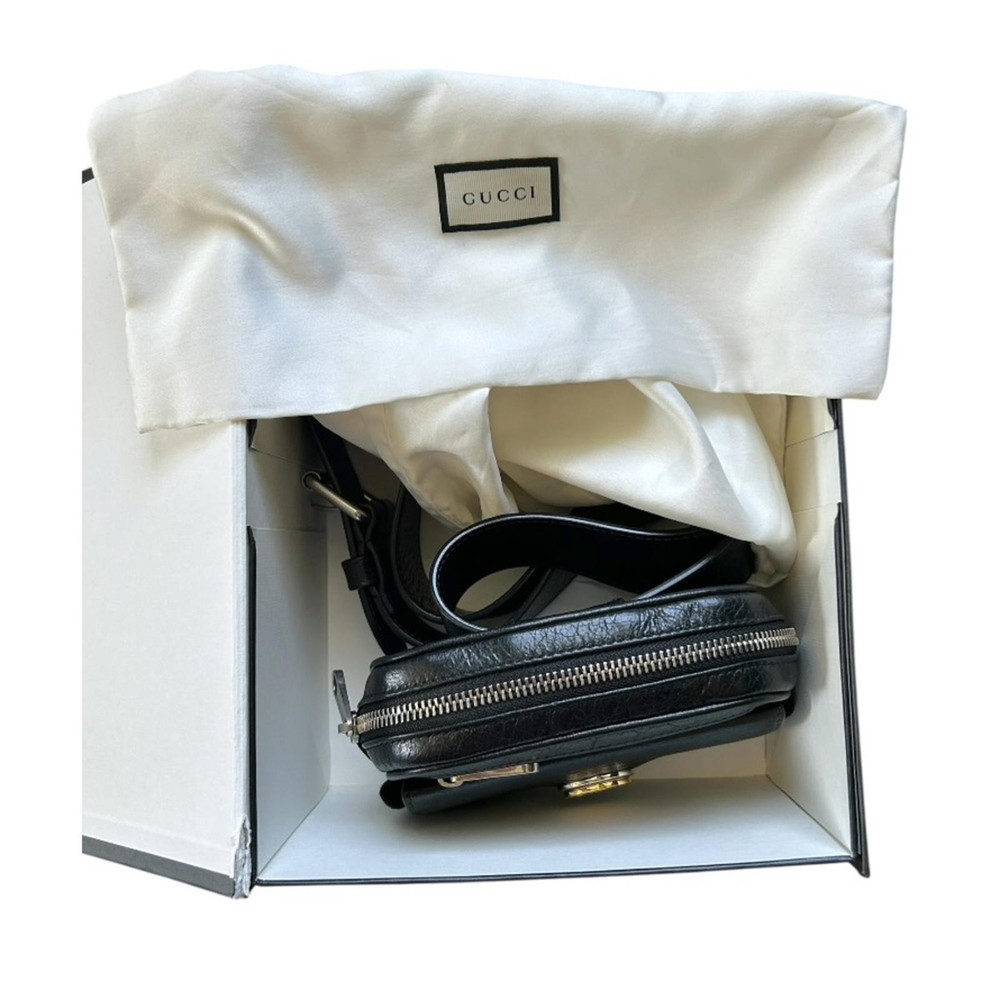 GUCCI Cracked Calfskin Morpheus Belt Bag in Black This belt bag is crafted of black textured leather with a vintage 1970's aesthetic. This bag comes with an adjustable leather belt and a gold and silver GG logo on thefront. The zipper opens to a fabric interior. This compact belt bag is perfect for any time of the day with distinctive style Gucci Belt Bag Black Leather Printed Silver-Tone Hardware Adjustable Waist Strap Dual Exterior Pockets Canvas Lining Zip Closure at Top Includes Box and Dust Bag Strap Length: 28" Height: 4" Width: 5.5" Depth: 2" Belt: Approx 39.5” DesignerID: 597676 562600