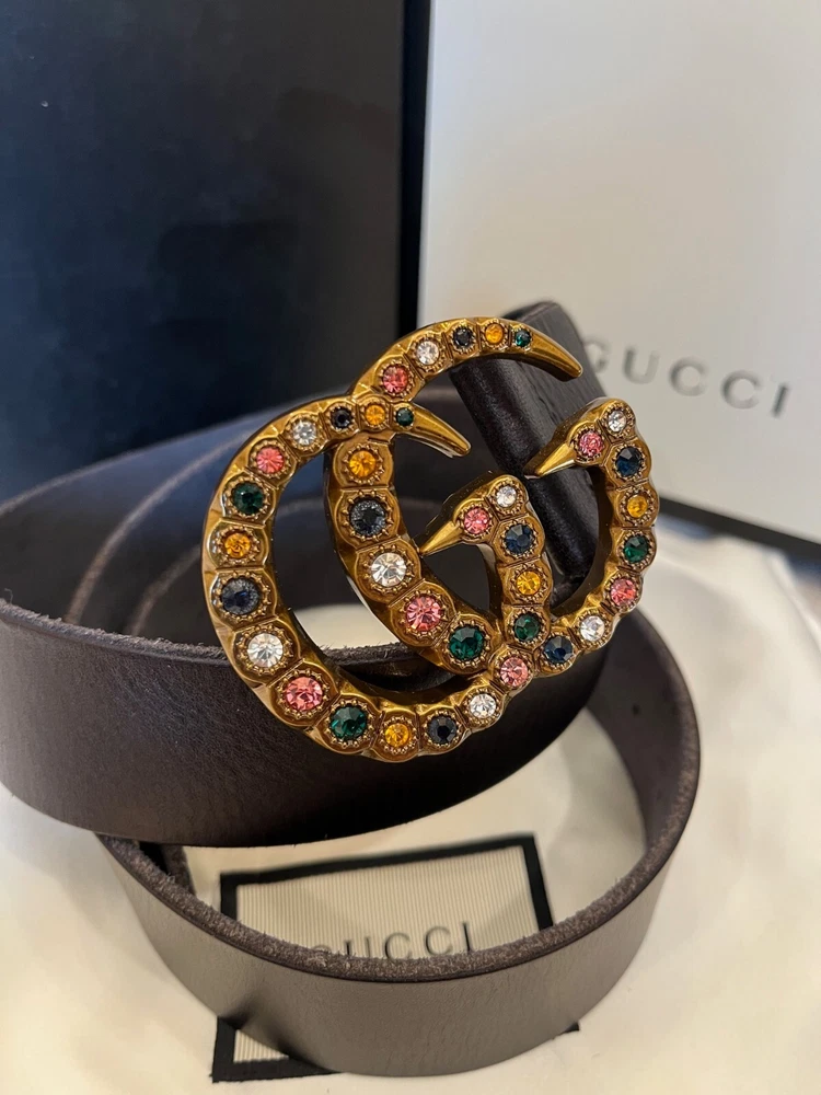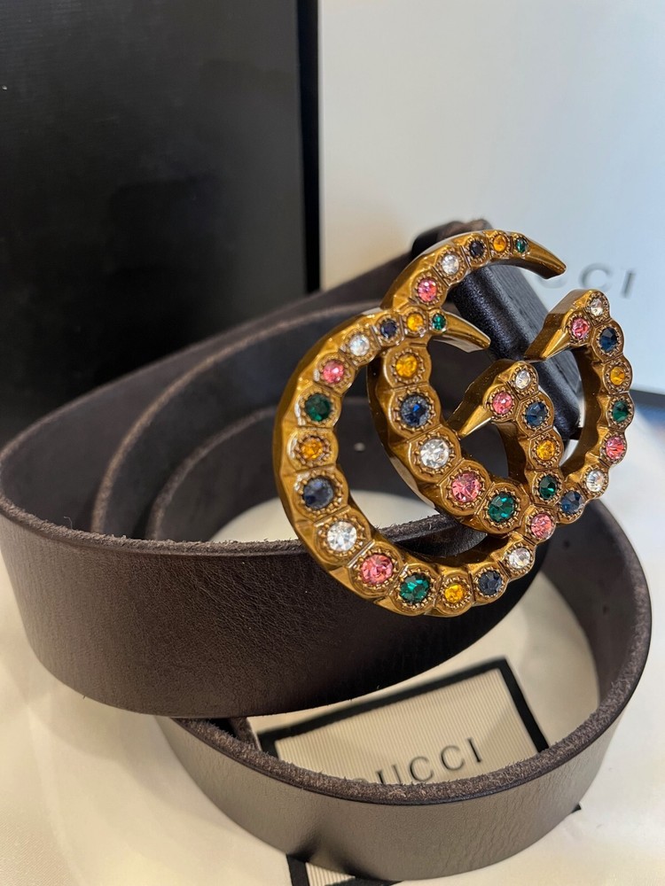 GUCCI Black Leather Belt with Gem's stone's Double GG Buckle Size 75 cm, fit's 24-26 waist, comes with Box & Dust Bag in EXCELLENT CONDITION.